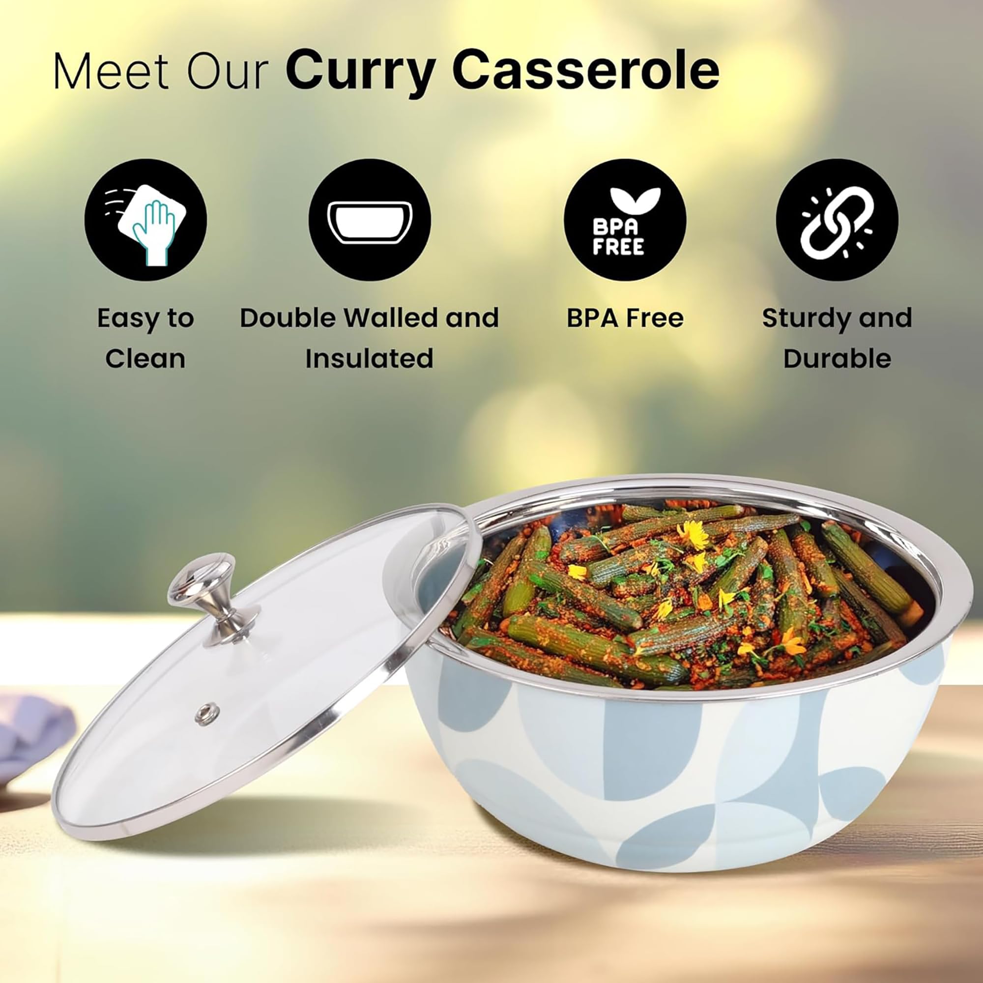 This is our stainless steel insulated casserole for hot food, which is made from high-quality materials to keep your meals warm. You can enjoy fresh rotis from this roti dabba while the transparent glass lid lets you see what's inside. It makes sure your food stays at the perfect temperature because it has excellent insulation. Don't worry about spills since it is designed to be leak-proof. We made sure this hotpot is easy to clean and perfect for your kitchen. It can hold a good amount of food so that you can serve your family with ease.Detailed Specifications: