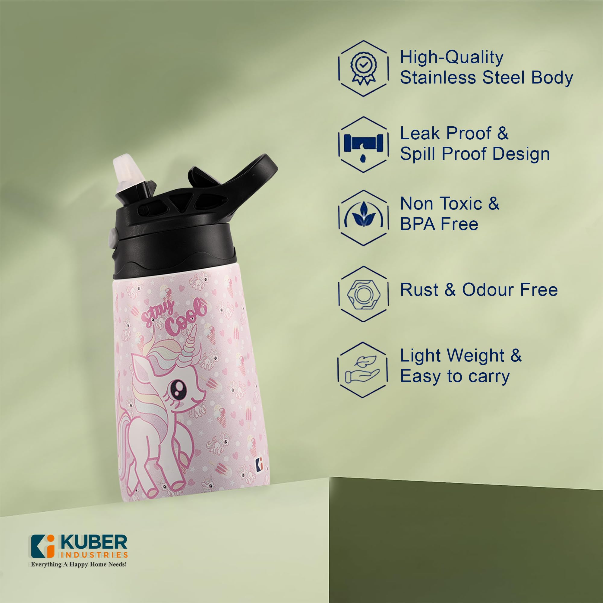 The 350-ml Insulated Sipper Water Bottle From Kuber Industries Is The Ideal Hydration Partner For Any Expedition. Made With Quality Materials, This Stylish Bottle Offers A Splash Of Colour With Its Vivid Prints And Keeps Your Drinks Delightfully Cool For Hours. This Bottle May Be Used For Errands, The Gym, Or Hiking Trails, As It Keeps You Hydrated And Rejuvenated All Day Long. Its 350 Ml Volume Offers The Ideal Ratio Of Sufficient Hydration To Portability. Thanks To The Insulated Structure, Your Drinks Will Stay Cool, And The Sipper Lid Design Makes Sipping On The Move Simple And Practical.Detailed Specifications: