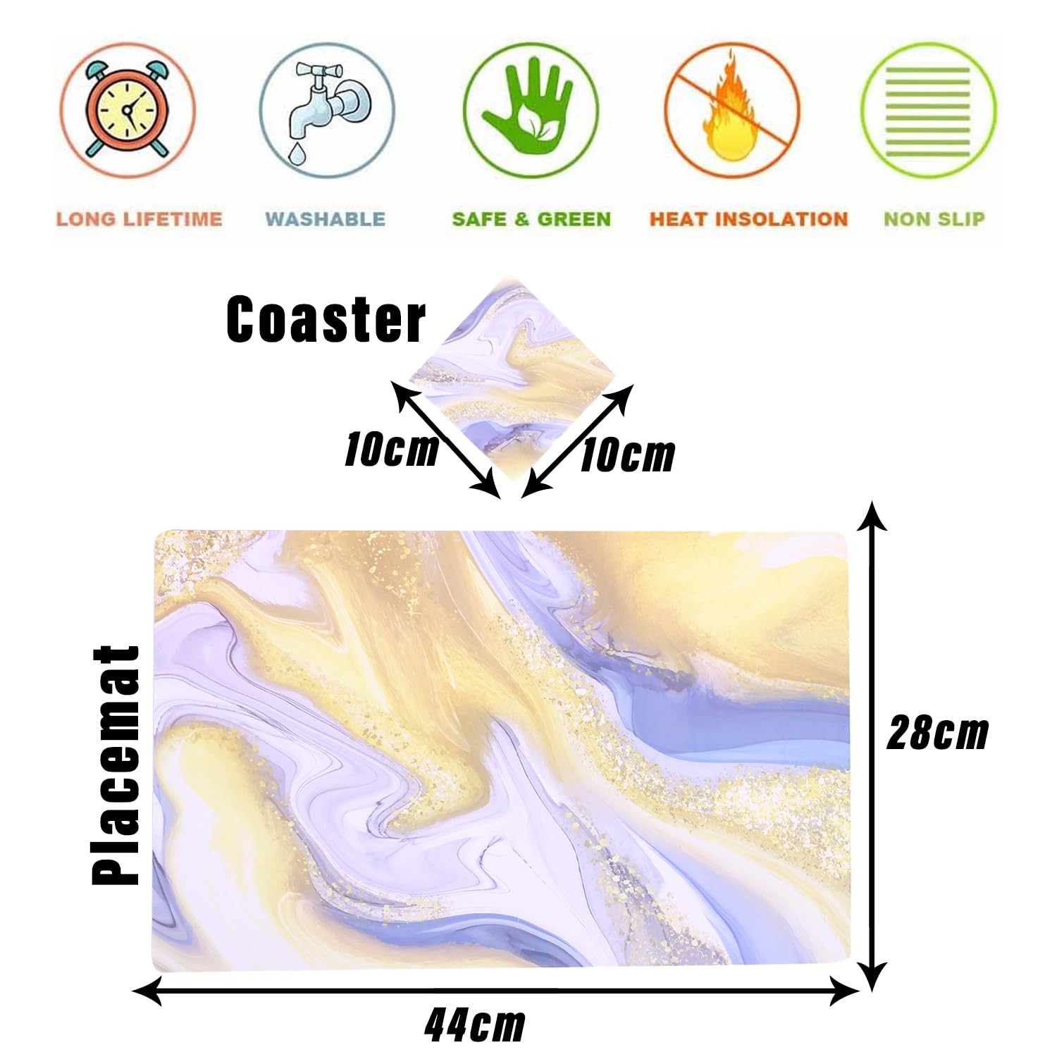 Introducing Heart Home, where elegance meets functionality in home decor. Elevate your dining experience with our exquisite 6-piece Placemat and 6-piece Coaster Set. Crafted with precision and an eye for detail, these accessories are designed to enhance the aesthetics of your dining table while protecting it from spills and stains. Our placemats, available in a variety of chic designs and colors, not only add a touch of sophistication but also provide a clean, organized setting for your meals. Each coaster, perfectly coordinated with the placemats, offers a secure and stylish platform for your beverages, safeguarding your furniture from unsightly rings.Detailed Specifications: