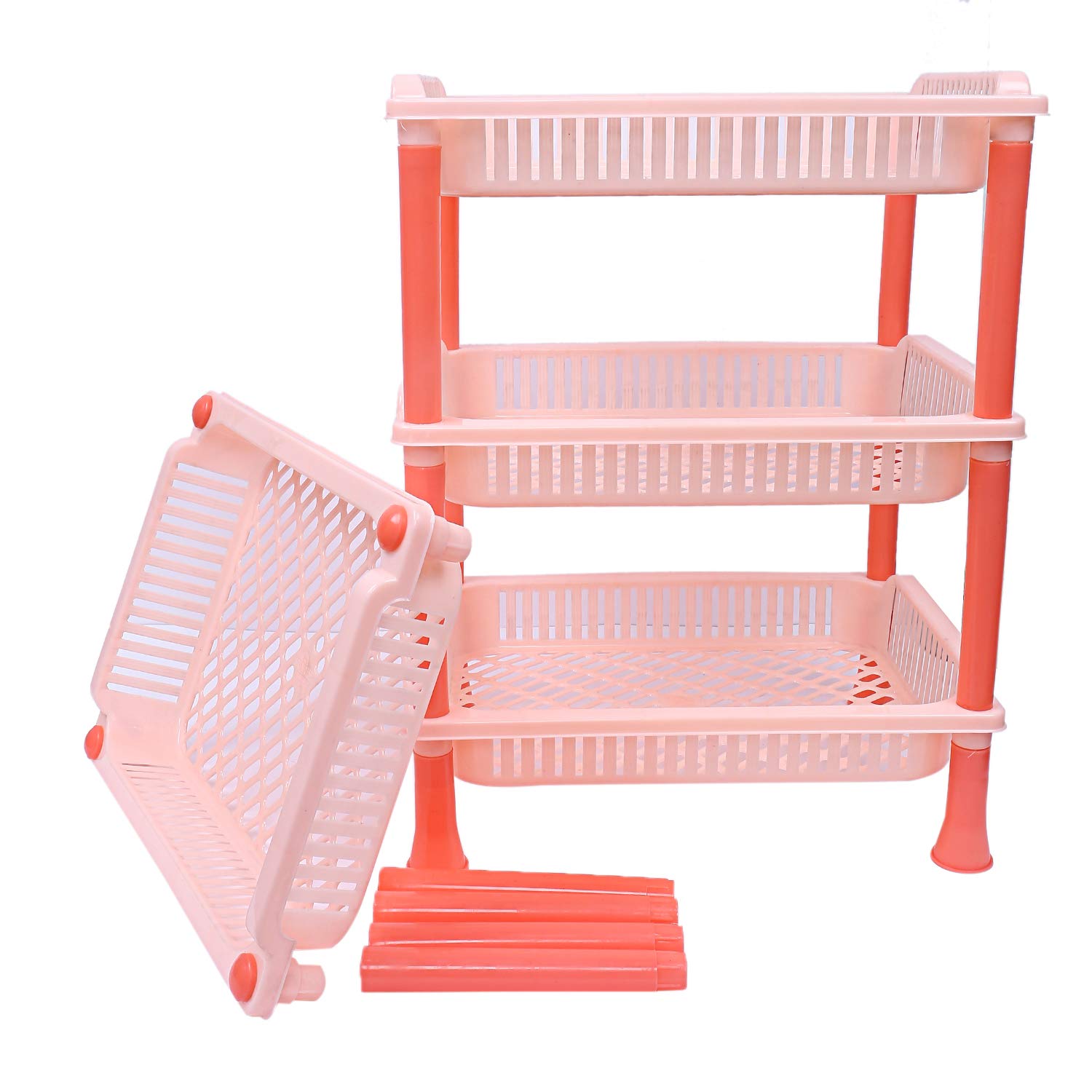 Kuber industries multipurpose basket rack is made of high quality food grade plastic material. This is very useful, long-lasting and has multiple usages. This basket rack has multiple layers to store vegetables, fruits and other thing of daily usage. This basket rack has an easy assembly system thats why no need to worry about it assembly system. This is portable so you can place it anywhere and it can be used in kitchen, living room and corner of the home.Detailed Specifications: