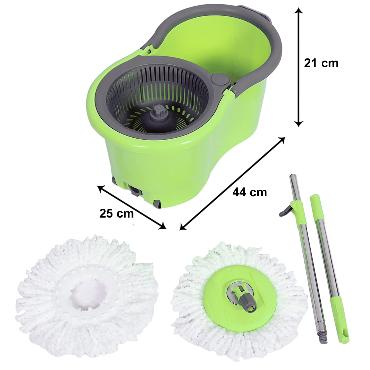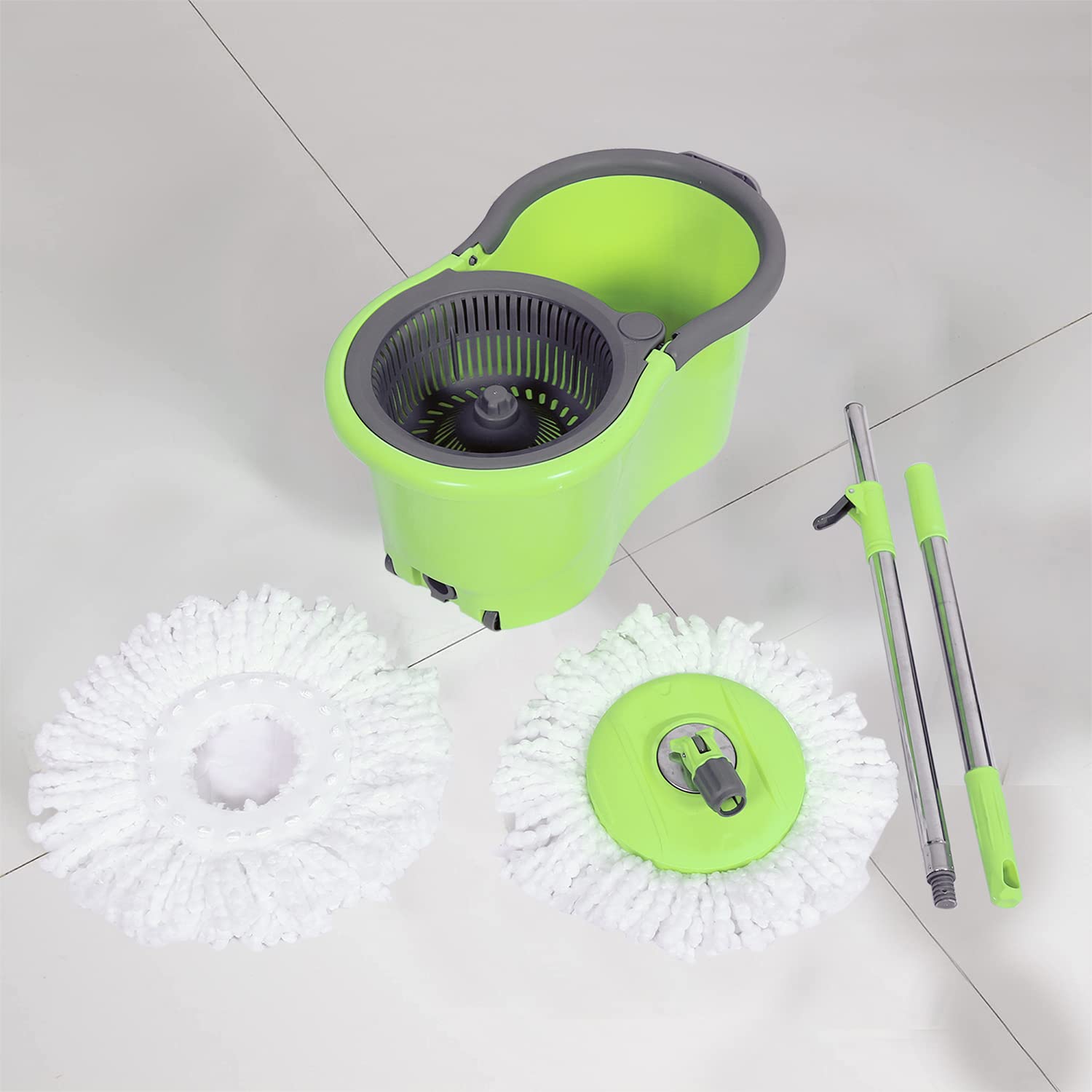 Kuber Industries Brings to you this mopping set. Lightweight and adjustable mop handle makes it easy to reach every nook and corner of the house - like under the table, under the bed, with great ease. Additionally, the set has a water outlet that drains dirty water. Easy to replace highly absorbent microfiber refill mop can be used as a wet mop or dry mop for all types of surfaces that you need to clean. This spin mop bucket is equipped with large wheels that make the portability of this set easy. Lightweight and adjustable mop handle reaches every corner of the house.Detailed Specifications: