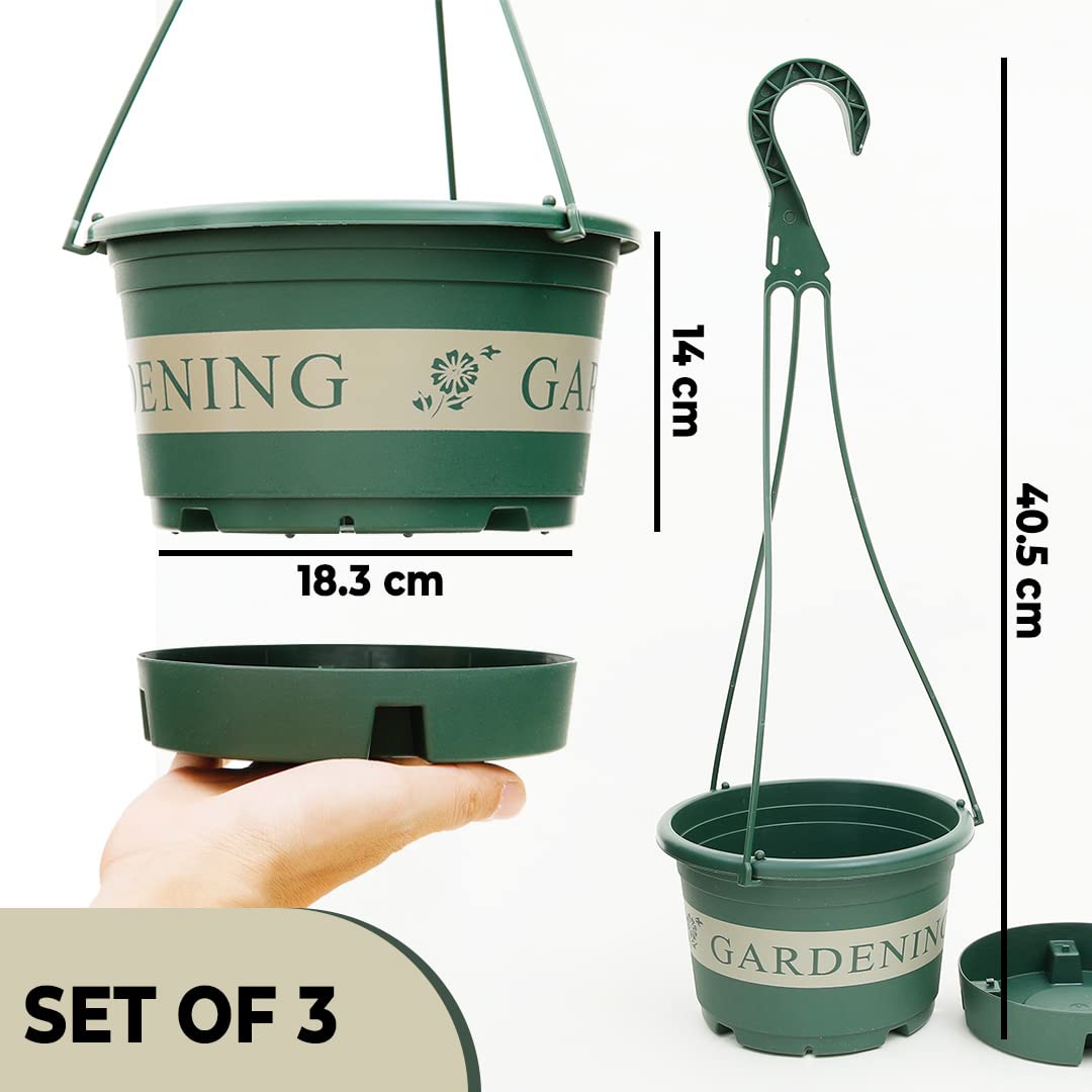 Kuber Industries Brings to you a wide range of multi-utility hanging pots for plants balcony railing, living rooms, office interiors, and other spaces! Made of high-density plastic, each flower pot is both durable & lightweight, making your decor dreams easy to execute. Also, each hanging planter is thoughtfully designed to have efficient water drainage holes - both in the pot for plant & the inside tray. These holes allow for efficient drainage and enhanced air permeability of the roots. This, in turn, boosts their healthy growth. Furthermore, these holes eliminate the need for daily watering of plants & worrying about proper drainage, saving both time and money on your part. A stylish yet minimalist look makes these hanging planter pots the perfect choice when it comes to adding just the right touch of ‘green’ elegance to your spaces! Simply hang them anywhere and watch the space come to life, in an instant! Also, these beautiful hanging pots for plants and flowers come in multiple sizes to help you choose the one that truly fits your needs like a glove!Detailed Specifications: