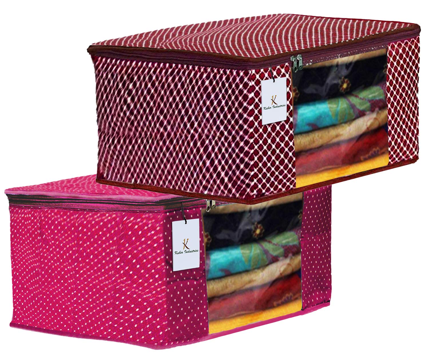 Set of 2 pieces in heavy quilted cotton polka dots material. Dimension-17 x 8 x 14 inches. It's a best option to use while travelling and it will help you to keep your saree in a separate cover from other items in your luggage. Prevent your favourite silk or cotton sarees from dust and moisture.