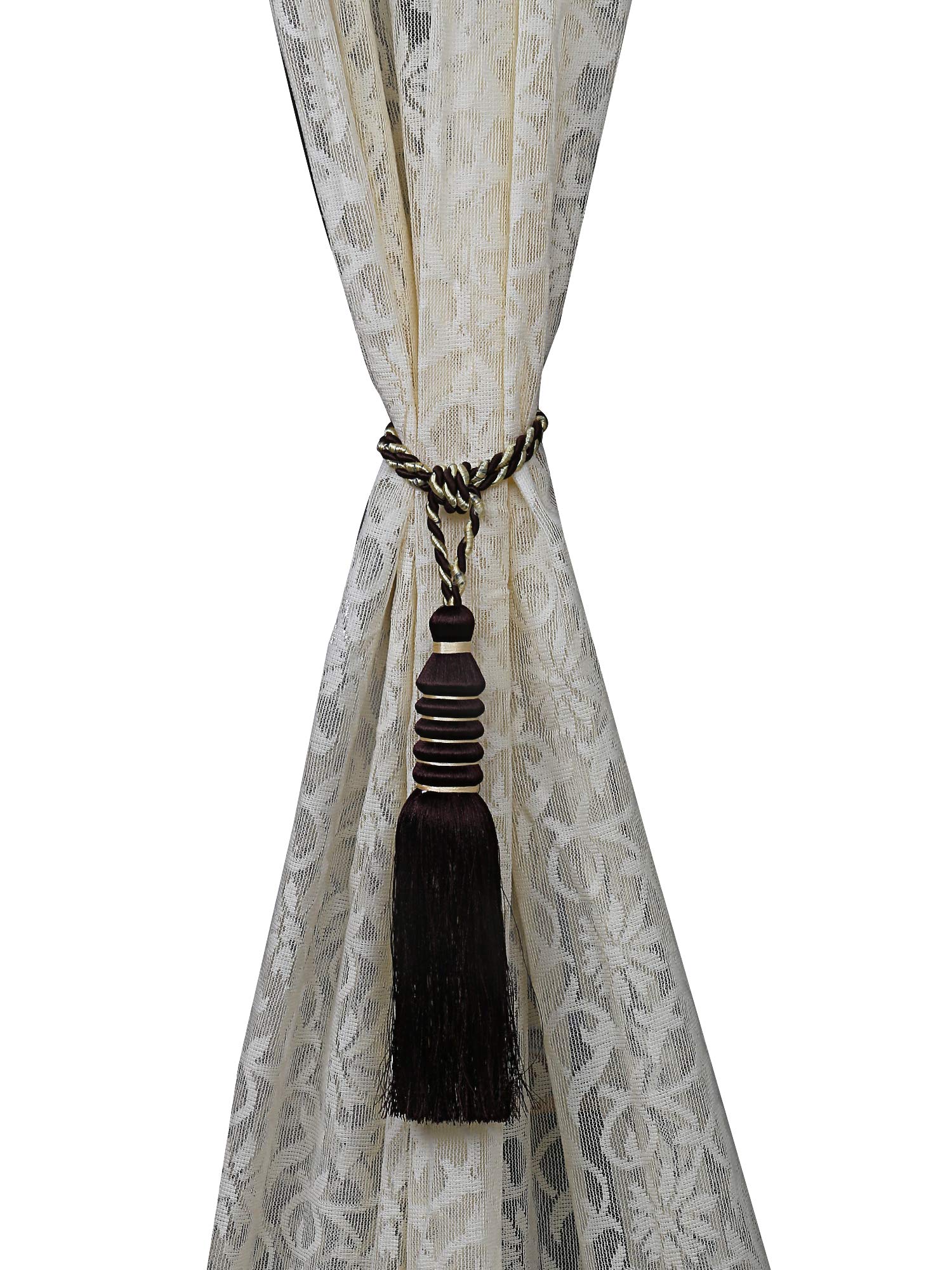 Kuber industries curtain tie back tassel is made of polyester material. Curtain set is uncompleted without tassel tie back, when curtain not in use then use tie back to hold curtain. Tassel tie back may consist of a single or paired set of tassels connected to a rope or braid with either one or two loops. Tassel tie back increases the beauty of curtain. With its elegant design you can also use it as decor or to hold back any curtain in your home.Detailed Specifications: