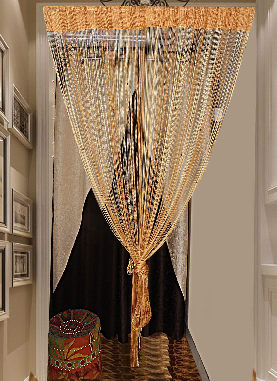 Kuber industries thread string curtain is made of premium quality polyester material so this is very durable, long-lasting and attractive. This is very stylish and can change the interior of your home. This gives the best lighting effect into your room. This string curtain comes with slot top for poles or rods. This is ideal for fabulous door curtain as partitions between bedroom, living room etc. And use as a screen to keep flies out. This can be easily suspended from the rod and swing beautifully from your door. Wash care: Machine wash in cold water on gentle cycle and tumble dry.Detailed Specifications: