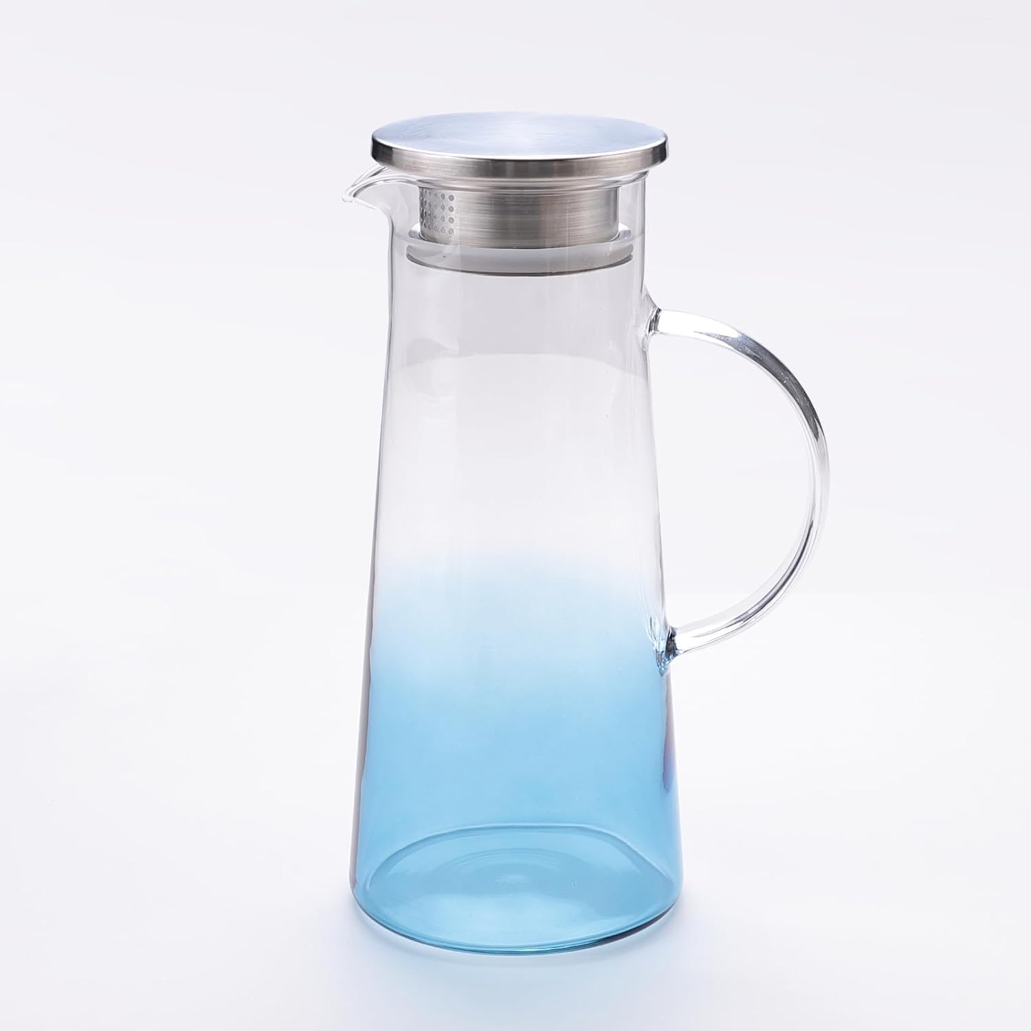 Introducing the Kuber Industries Premium 1.4 Ltr Glass Jug with Stainless Steel Lid and Handle, a stunning addition to your kitchen arsenal. Crafted from high-quality borosilicate glass, this jug embodies elegance and functionality. Its scratch-resistant and lightweight design ensures durability, while the non-porous surface makes cleaning a breeze. With an ergonomic handle providing a firm grip, pouring becomes effortless, enhancing your serving experience. This multipurpose jug features a stainless steel strainer lid, perfect for filtering beverages, and a large 1400ml capacity ideal for serving juice, water, cocktails, mocktails, and more. Its wide mouth facilitates easy filling and cleaning, complemented by the easy pour spout for mess-free serving. The captivating blue hue adds a touch of aesthetic appeal to any setting, making it a stylish addition to your dining table. Ideal for daily use or special occasions, any drink is best enjoyed from this elegant glass jug set. It's not only stylish but also strong, durable, and chip-resistant, ensuring long-lasting performance. Give it as a gift to your family and friends for housewarmings or special celebrations, and let them indulge in the luxury of Kuber Industries Premium. Designed for the discerning juice lover, this jug boasts an innovative octagonal design, setting it apart from the rest. Plus, with our Perfect-Delivery Guarantee, you can trust that your jug will arrive in pristine condition, ready to impress. Packaged securely in a plain craft box with proper insulation, rest assured that your jug will be delivered safely, ensuring a worry-free experience. Embrace luxury and functionality with the Kuber Industries Premium Glass Jug Set, where every sip is a delight. Whether you're enjoying a refreshing drink at home or hosting a party, this jug is the perfect companion. Add a touch of sophistication to your beverage service with Kuber Industries Premium, the epitome of style and quality.Detailed Specifications: