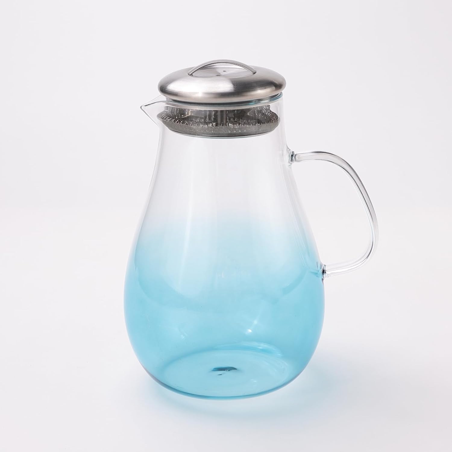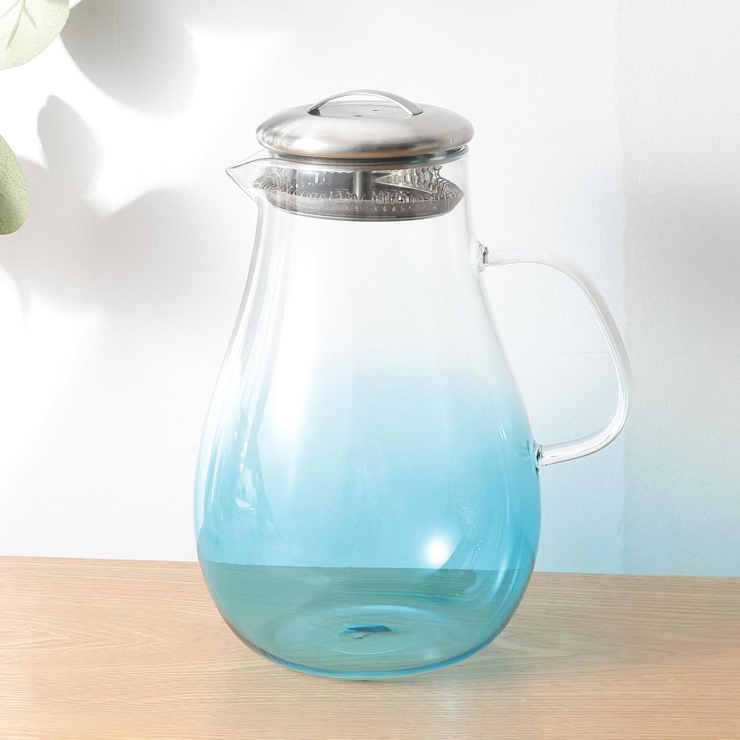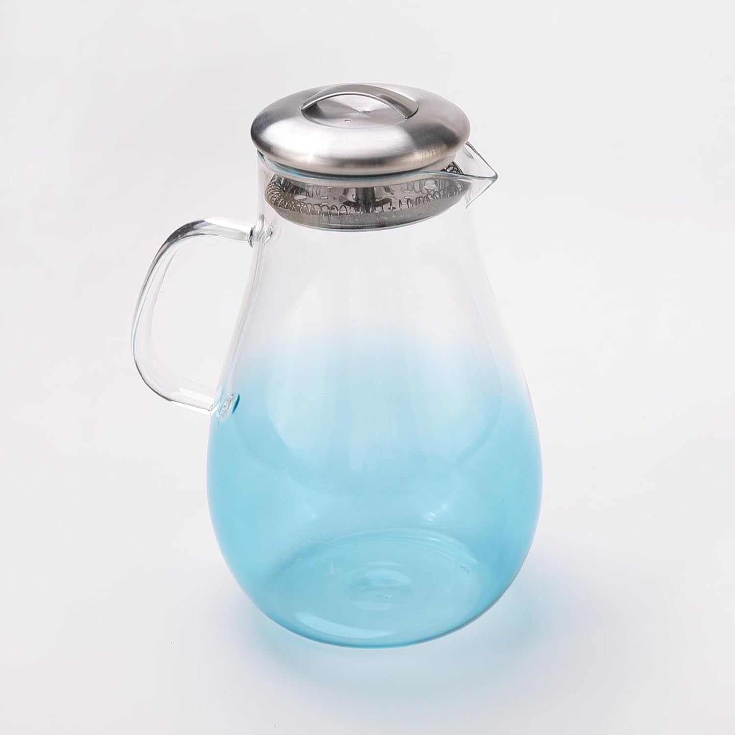 Introducing the Kuber Industries Premium 970ml Glass Jug with Stainless Steel Lid and Handle, a stunning addition to your kitchen arsenal. Crafted from high-quality borosilicate glass, this jug embodies elegance and functionality. Its scratch-resistant and lightweight design ensures durability, while the non-porous surface makes cleaning a breeze. With an ergonomic handle providing a firm grip, pouring becomes effortless, enhancing your serving experience. This multipurpose jug features a stainless steel strainer lid, perfect for filtering beverages, and a large 970ml capacity ideal for serving juice, water, cocktails, mocktails, and more. Its wide mouth facilitates easy filling and cleaning, complemented by the easy pour spout for mess-free serving. The captivating Blue hue adds a touch of aesthetic appeal to any setting, making it a stylish addition to your dining table. Ideal for daily use or special occasions, any drink is best enjoyed from this elegant glass jug set. It's not only stylish but also strong, durable, and chip-resistant, ensuring long-lasting performance. Give it as a gift to your family and friends for housewarmings or special celebrations, and let them indulge in the luxury of Kuber Industries Premium. Designed for the discerning juice lover, this jug boasts an innovative octagonal design, setting it apart from the rest. Plus, with our Perfect-Delivery Guarantee, you can trust that your jug will arrive in pristine condition, ready to impress. Packaged securely in a plain craft box with proper insulation, rest assured that your jug will be delivered safely, ensuring a worry-free experience. Embrace luxury and functionality with the Kuber Industries Premium Glass Jug Set, where every sip is a delight. Whether you're enjoying a refreshing drink at home or hosting a party, this jug is the perfect companion. Add a touch of sophistication to your beverage service with Kuber Industries Premium, the epitome of style and quality.Detailed Specifications:
