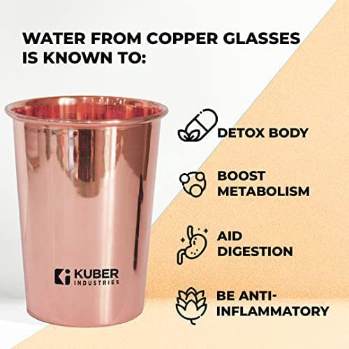 GlassesKuber Industries Copper Water Glasses are an elegant and stylish way to sip on water or other beverages. The glasses are crafted from high-quality copper, with a glossy finish that enhances its natural beauty. Additionally, the copper helps to keep the water at a cool temperature, so you can enjoy your beverages even longer. The glasses feature an ergonomic design that makes them easy to hold and comfortable to sip from. They also come with an anti-corrosion layer for increased durability and a sleek look that adds a touch of class to any table setting. Perfect for entertaining guests, these glasses are sure to be the highlight of any dinner party or gathering. |