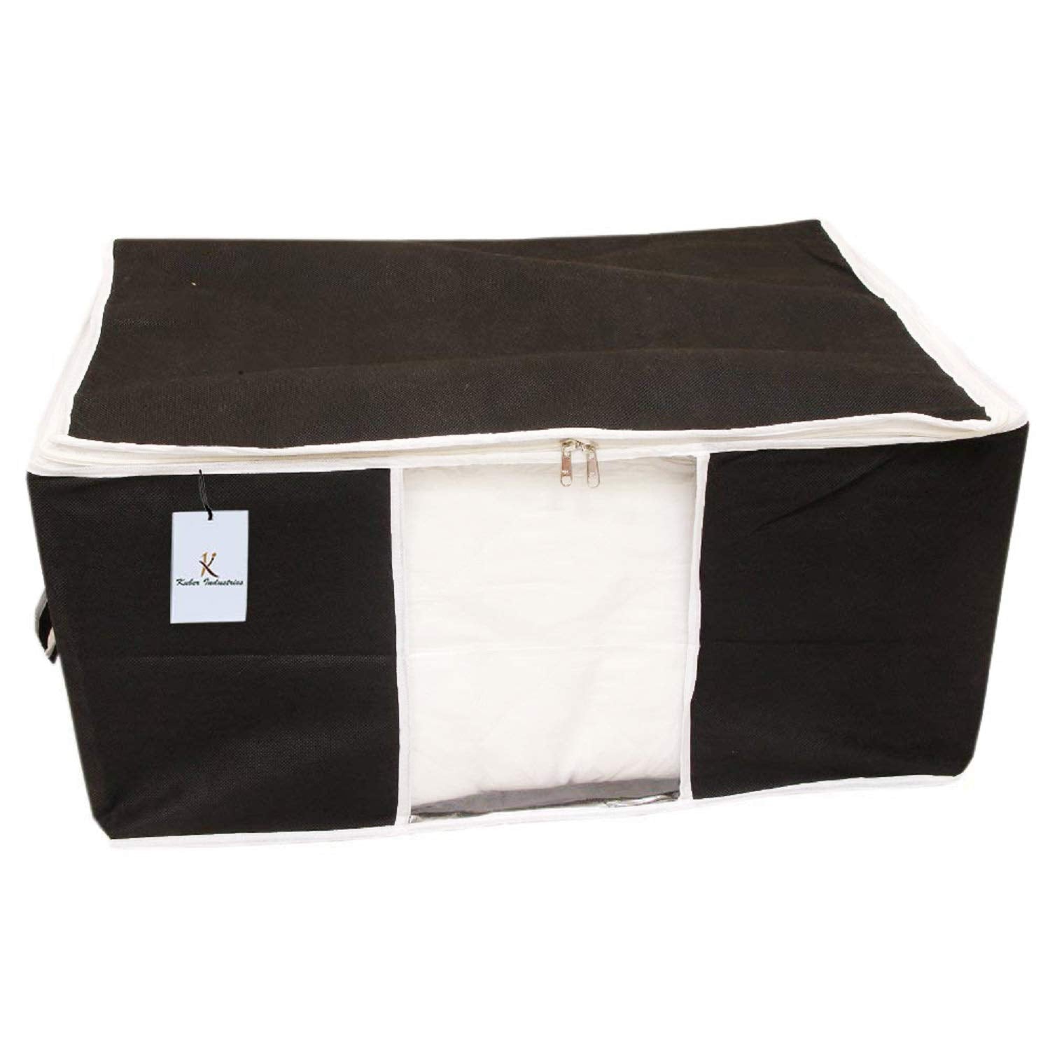 Folding, durable and non woven fabric, easy storage fabric sweater clothes blanket storage bag suitable for storing clothes, blankets, sweater, quilts, coats and other. Easy to organize all your stuff and take out your clothes from mildew, dust, moisture, insects, anti-discoloration as they are well stored. Material - non woven fabric, color - black, dimensions - 65 x 47 x 33 cm. Design- plain. Package contents: 3 under bed storage bag. Carefully stitched to offer additional strength. Transparent see-through window for easy identification of contents.