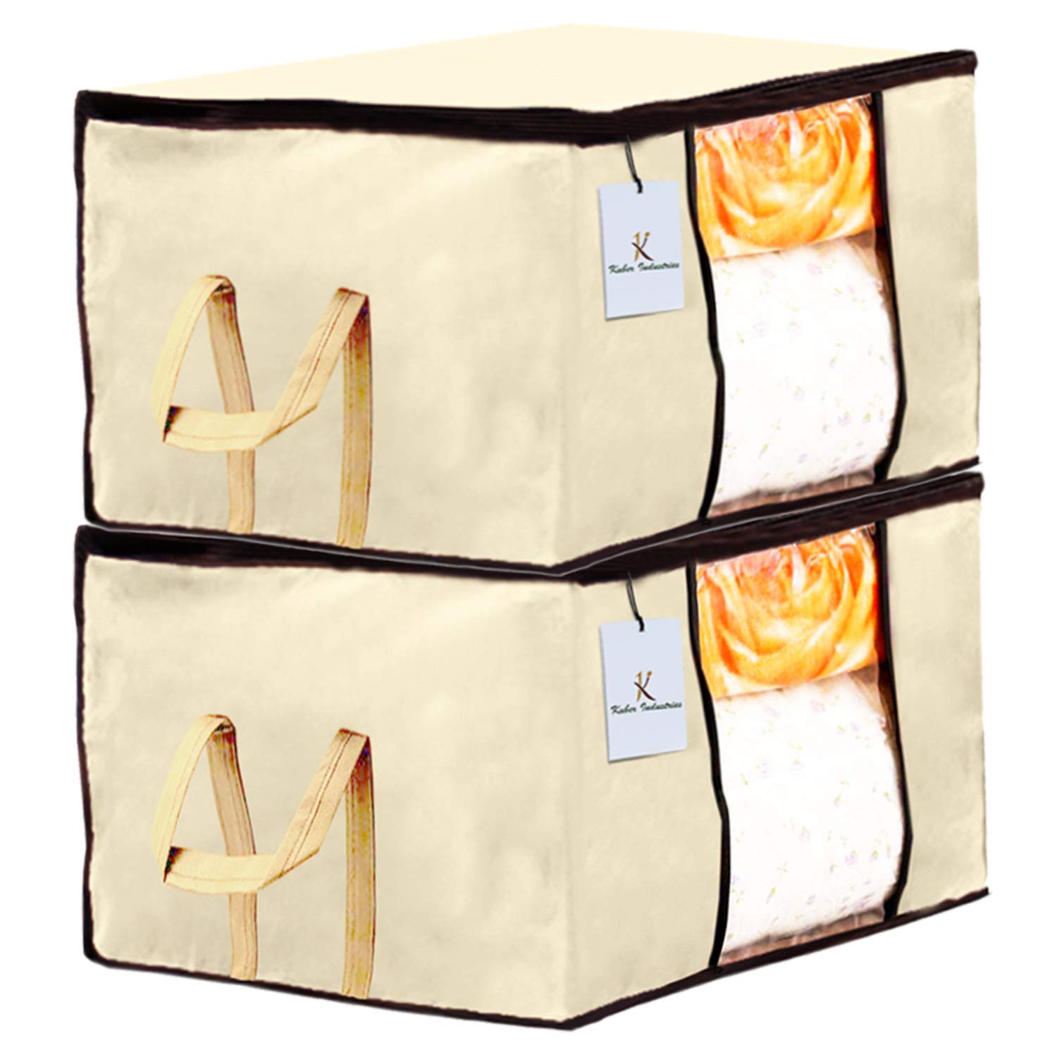Made from durable, wear and tear-resistant non-woven fabric. Lightweight and flexible organiser fits under multiple beds, carefully stitched to offer additional strength. Size of each bag: 65 cm x 47 cm x 34 cm, transparent see-through window for easy identification of contents. Durable zipper for easy opening and closing, under bed storage bags for dust, dirt and pest-free storage. Attached handles for convenient pulling and lifting, package contents: 2 pieces underbed storage bags (color: Ivory),.Kuber Industries's Underbed Bag keeps your quilts, blankets, pillows, bedsheets, towels, summer and winter clothing organized. It is perfect for storing those off-season things not needed. It easily goes inside wardrobe, in the bed storage section, shelves, and reduces clutter in wardrobes and closets.The bag can be folded back when not in use. It collapses flat for saving precious storage space.The Storage bag can be kept in your storage beds, closets, wardrobes, storage cabinets. It maximizes your storage space and is perfect for those not-so-frequently used items in your Households.