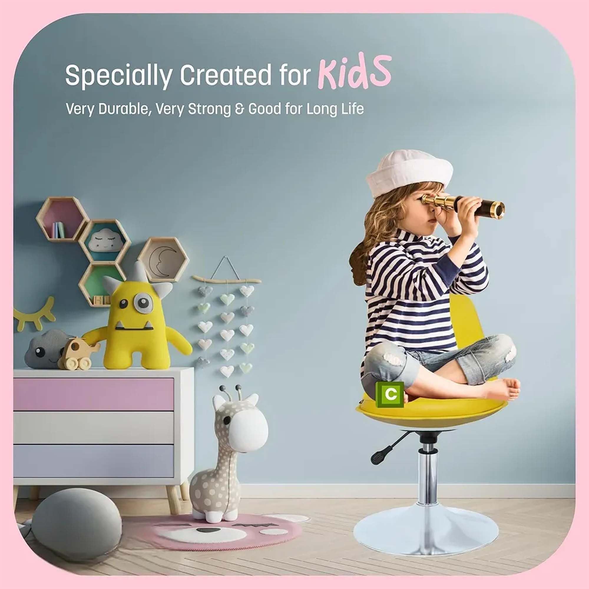 This mini bar stool chair for kitchen by Kuber Industries makes sure to offer strong support with its height-adjustable feature. You can adjust it for your child when they sit as a baby food chair or use it during study sessions as a kids study chair. The 360 swivel seat lets them move with ease without causing inconvenience. Its tough leather seat adds comfort while the curved design gives them flexibility. Whether in the kitchen or another room, this long stool for kitchen is great for growing kids who need reliable seating for multiple uses.Detailed Specifications:
