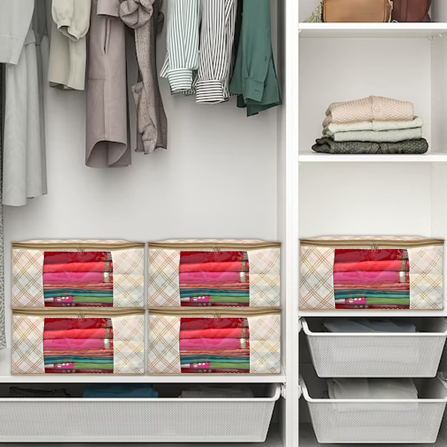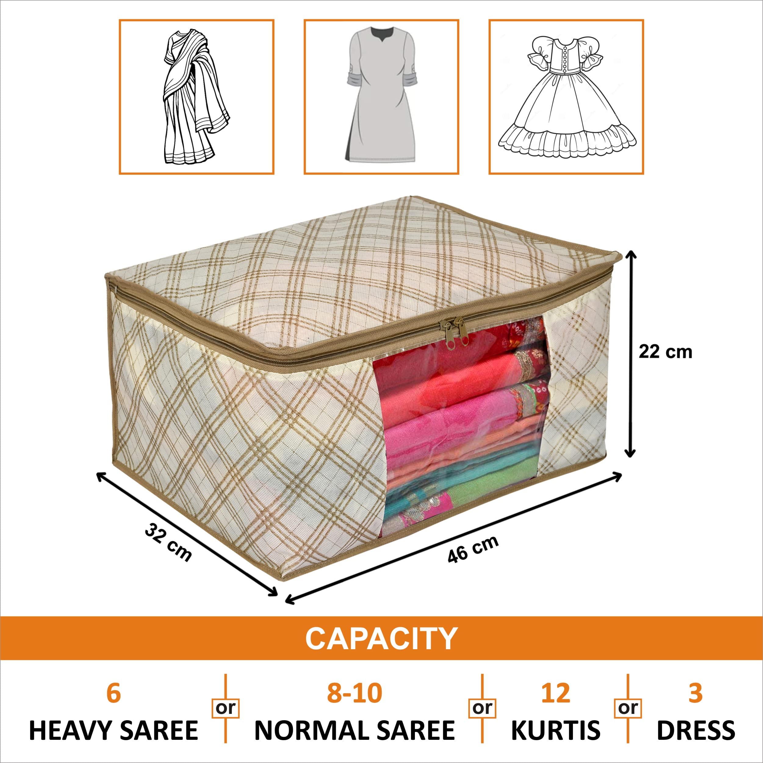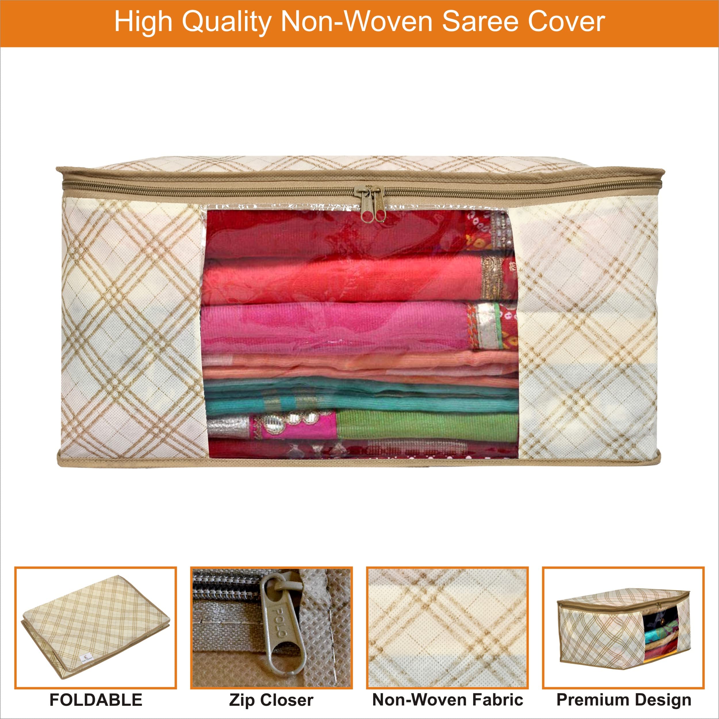 Kuber Idnustries saree/cloth organizer perfect to keep your heavy sarees & other cloth safe and maintain their elegance and new look, the non-woven large saree cover bag with transparent window not only helps you keep your sarees safe from external environment but also ensures that the quality of the saree is maintained. Built and designed with three different layers, it comes with two zippers and a transparent window that eases overall use of the bag. Uniquely designed to prevent kept clothes from insects, the bag also prevents your sarees from moisture and dust.Kuber Industries is a customer-loved brand that brings you everything you need to make a house a home. Right from nifty storage solutions to smart kitchen essentials, our products are known for their premium and durable quality.
