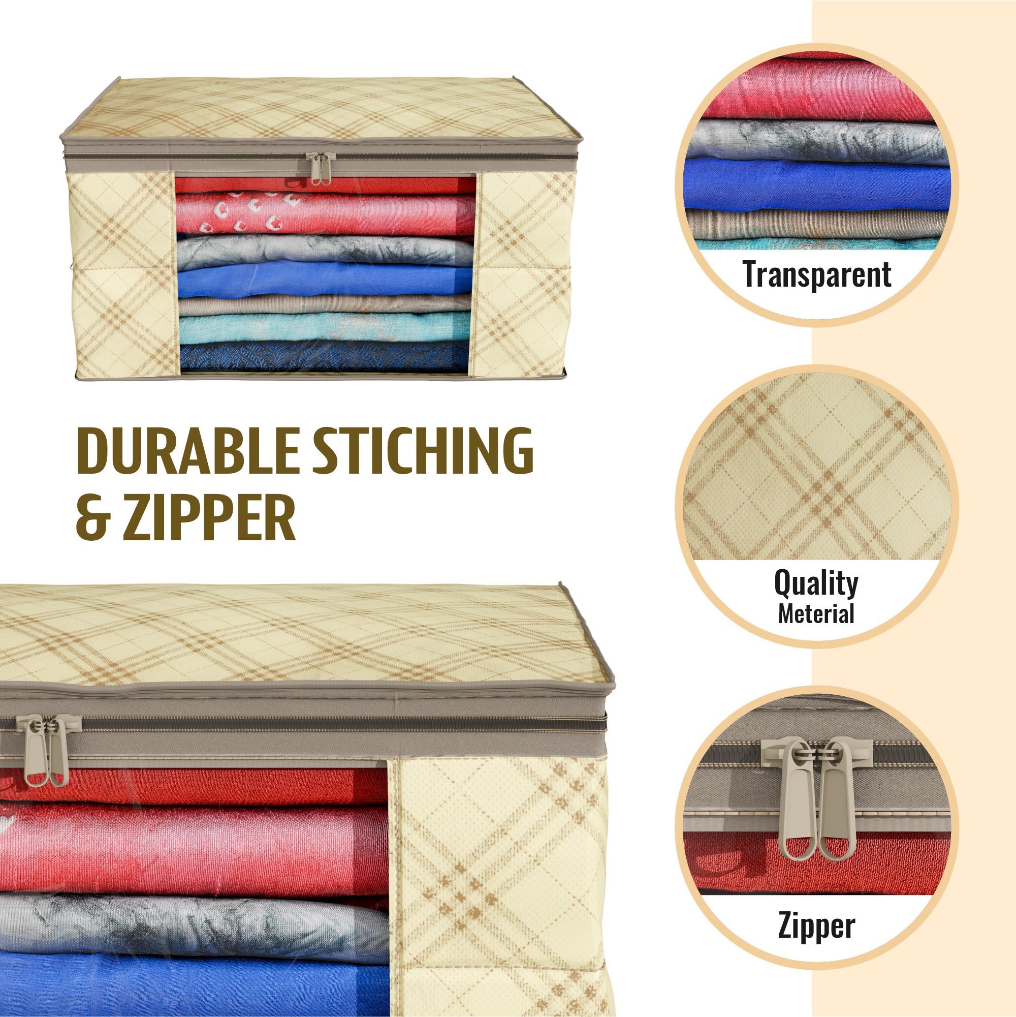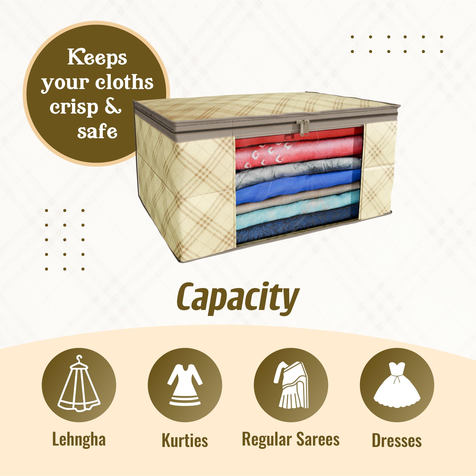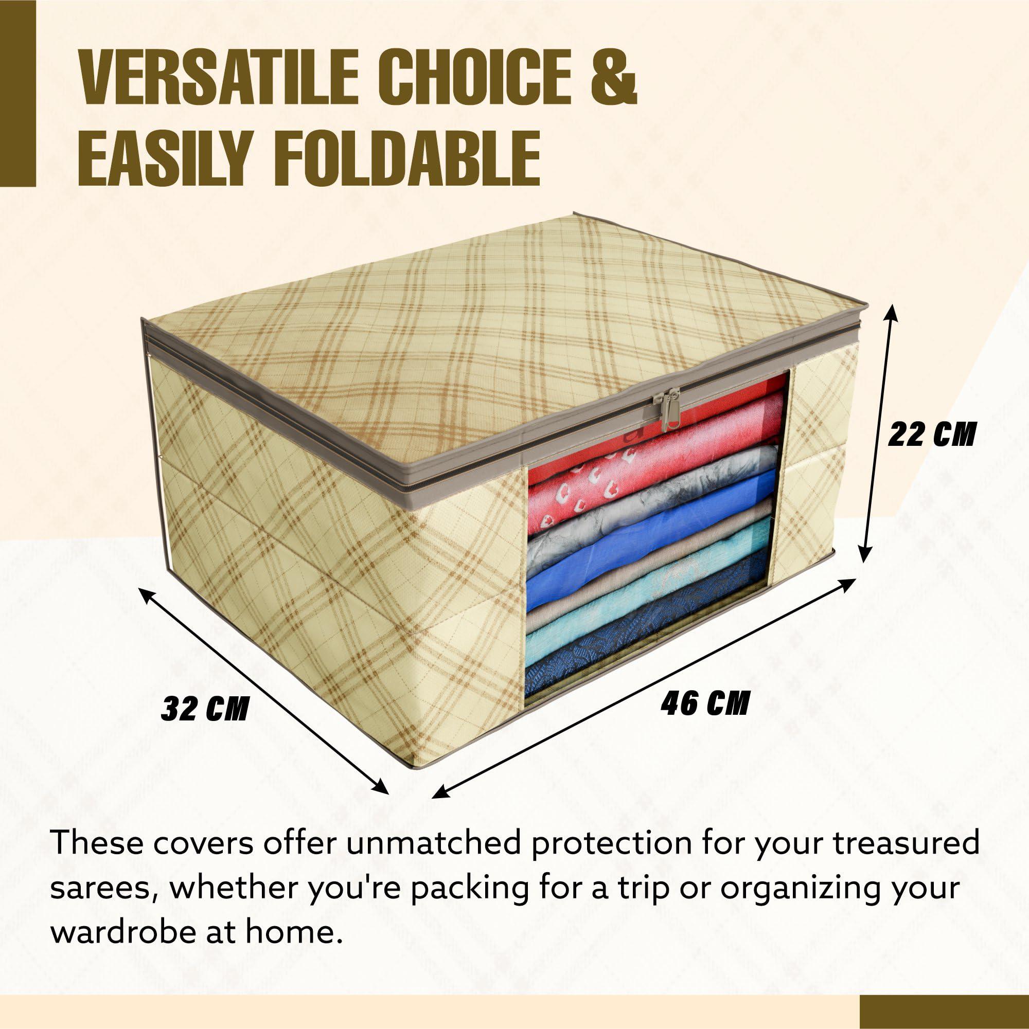 Kuber Idnustries saree/cloth organizer perfect to keep your heavy sarees & other cloth safe and maintain their elegance and new look, the non-woven large saree cover bag with transparent window not only helps you keep your sarees safe from external environment but also ensures that the quality of the saree is maintained. Built and designed with three different layers, it comes with two zippers and a transparent window that eases overall use of the bag. Uniquely designed to prevent kept clothes from insects, the bag also prevents your sarees from moisture and dust.Kuber Industries is a customer-loved brand that brings you everything you need to make a house a home. Right from nifty storage solutions to smart kitchen essentials, our products are known for their premium and durable quality.