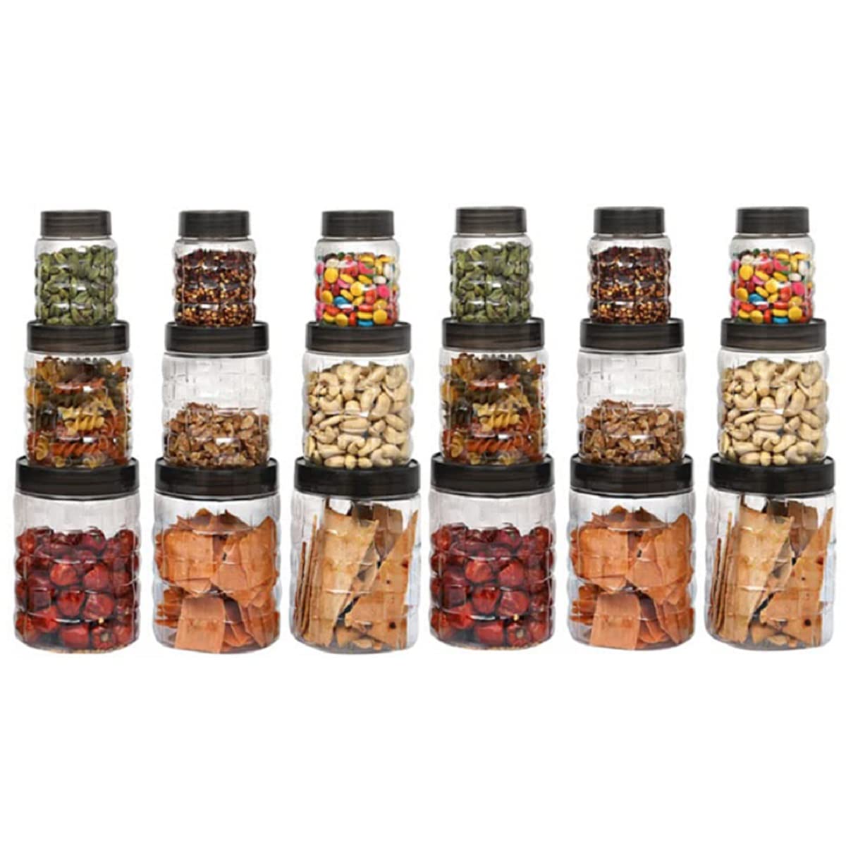 This tope kitchen set for home is wobble proof, multipurpose, and is suitable for both gas stove and induction cooking. Their blunt edge design and shiny finish gives an elegant touch to your stainless steel kitchen cookware. Available in different sizes (set of 5), these utensils are highly durable, easy to clean and stackable, making it the perfect cooking set for your kitchen.Introducing Kuber Industries Plastic Kitchen Containers, the perfect solution for storing and organizing your kitchen essentials! Made from 100% BPA-free and food-grade virgin plastic, these containers are not only safe for your health but also durable and long-lasting. With a variety of sizes and shapes, these containers are perfect for storing everything from grains, pulses, spices, and snacks to leftover food items. The airtight lid ensures that your food stays fresh and free from moisture and contaminants.