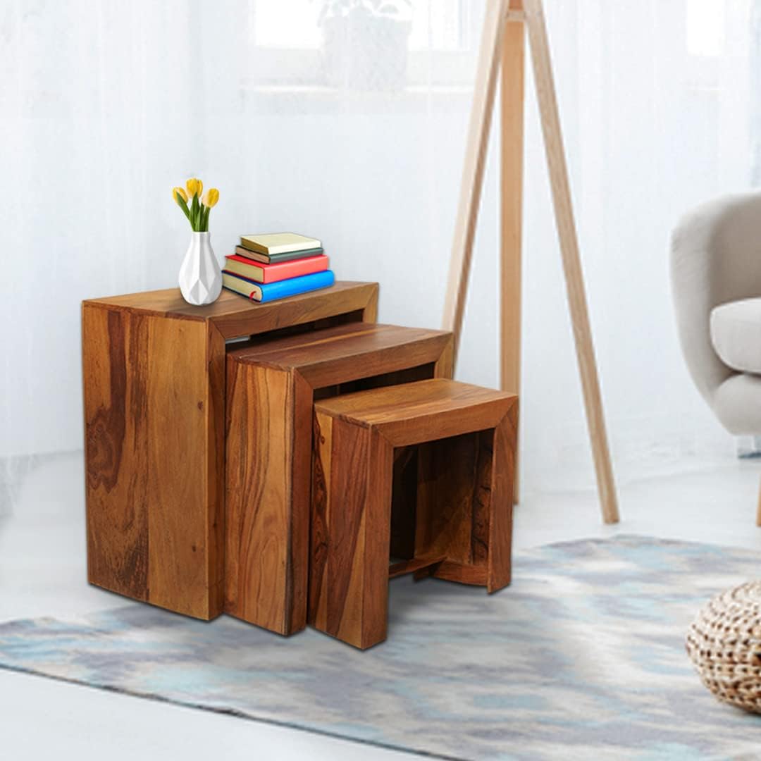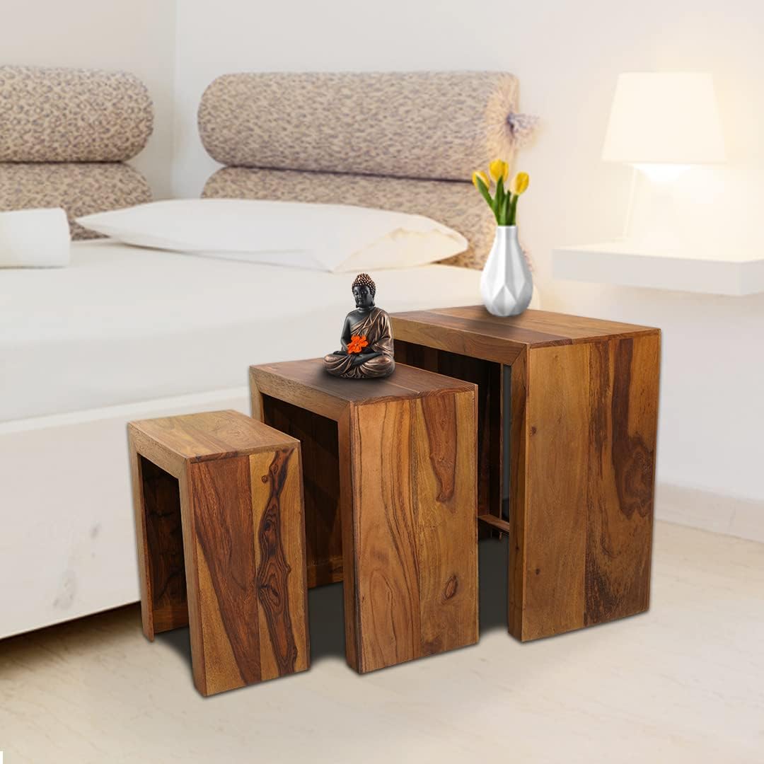 Kuber Industries wooden table set makes sure you have space-saving furniture, which is perfect for your home, bedroom, or office. These nested tables for living room provide a stylish way to organize small areas because they offer flexibility to fit into any room. You can use these nesting tables as stools, side tables, or display pieces, and they work well in compact spaces. The peg tables for living room are easy to move around because of their simple design, allowing you to create different setups without any inconvenience. This nested table furniture helps you keep your space tidy.Detailed Specifications: