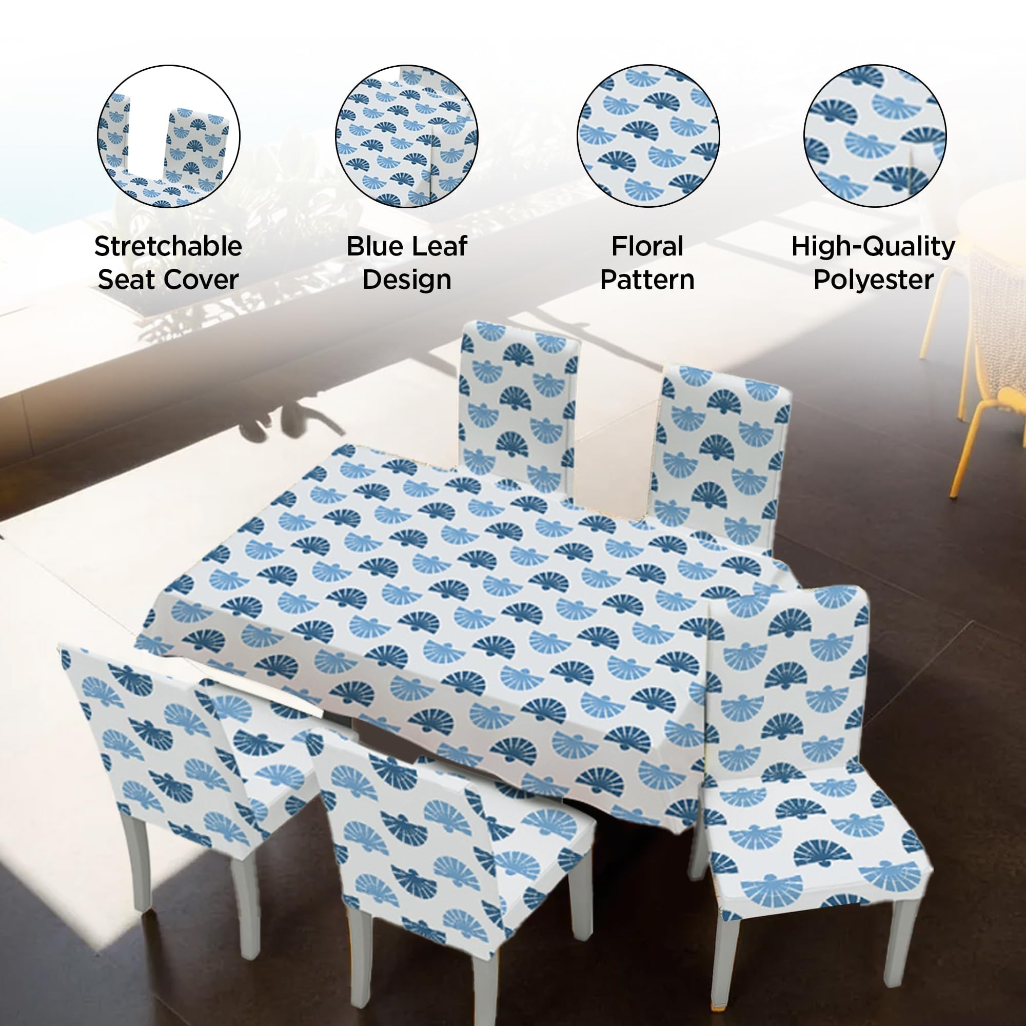 • ✅ Package Contains - (Set of 7) Dining Table Chair Cover Set | Color - Floral leaf Pattern Blue | Material - Polyester | Product Dimensions - 140 x220