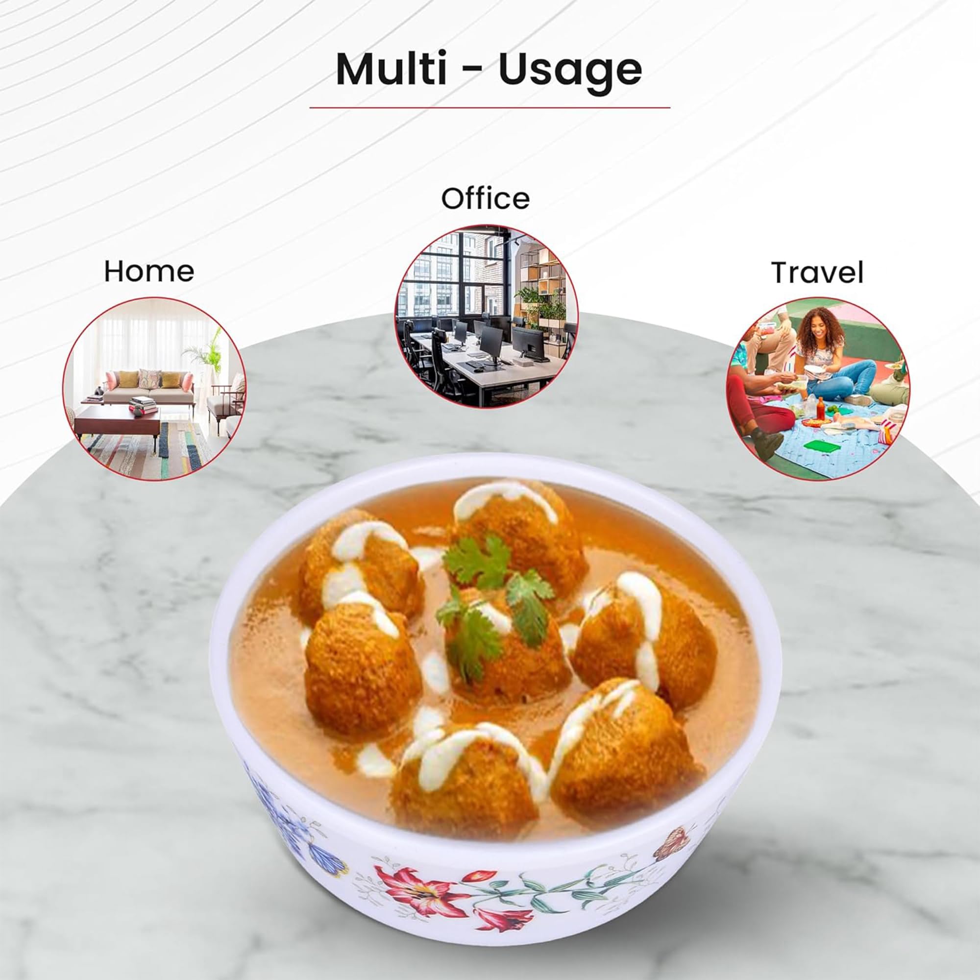 This food bowl for human is designed for multipurpose use. You can use it as a salad bowl which makes sure you enjoy fresh meals. Our katori is aesthetic and adds charm to your table. It is a desert bowl that brings joy to your treats. The print gives it a unique look. Microwave and dishwasher safe because we know convenience matters. This bowl is perfect for any occasion.Detailed Specifications: