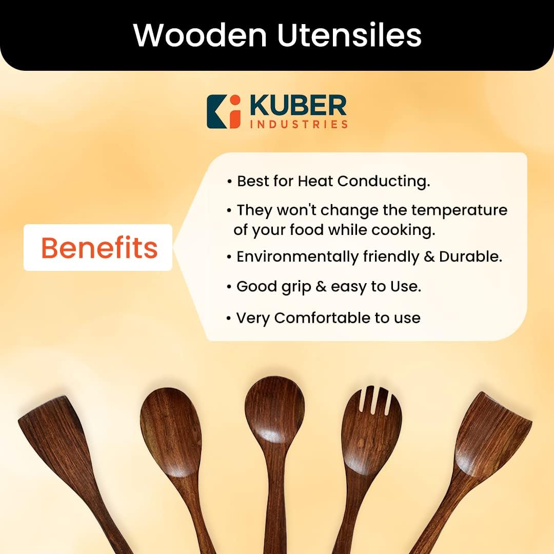 Are you looking for a wooden utensil set for your kitchen? Look no further than this amazing Wooden Spatula and Spoon Set from Kuber Industries ! This set of 5 pieces is made from premium quality wood, making it durable and perfect for most cooking tasks, from stirring, flipping, and stirring to scattering, scooping, and serving. The wooden ladles and spoons can be used for all kinds of cooking, whether for frying, baking, or boiling. Whether you are a newbie or a pro in the kitchen, these wooden utensils are just the right tools to help you get things done in the kitchen. With this set, you can cook like a professional in no time and enjoy delicious meals.Detailed Specifications: