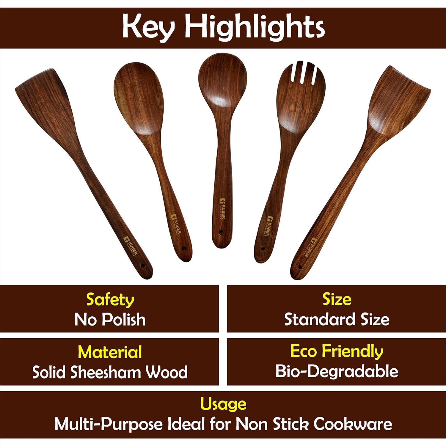Are you looking for a wooden utensil set for your kitchen? Look no further than this amazing Wooden Spatula and Spoon Set from Kuber Industries ! This set of 5 pieces is made from premium quality wood, making it durable and perfect for most cooking tasks, from stirring, flipping, and stirring to scattering, scooping, and serving. The wooden ladles and spoons can be used for all kinds of cooking, whether for frying, baking, or boiling. Whether you are a newbie or a pro in the kitchen, these wooden utensils are just the right tools to help you get things done in the kitchen. With this set, you can cook like a professional in no time and enjoy delicious meals.Detailed Specifications: