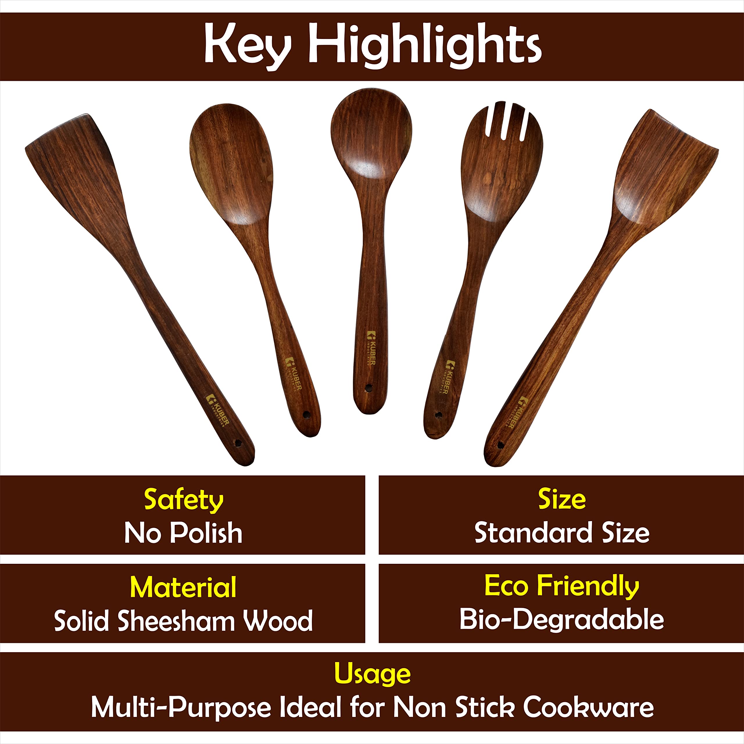 Kuber Industries brings in Wooden Spatulas that are made up of Sheesham wood.Comes in Set of 5 , these are suitable to Cook Curry, Sauteeing vegetables, Serving Dishes.Are you looking for a wooden utensil set for your kitchen? Look no further than this amazing Wooden Spatula and Spoon Set from Kuber Industries! This set of 5 pieces is made from premium quality wood, making it durable and perfect for most cooking tasks, from stirring, flipping, and stirring to scattering, scooping, and serving. The wooden ladles and spoons can be used for all kinds of cooking, whether for frying, baking, or boiling. Whether you are a newbie or a pro in the kitchen, these wooden utensils are just the right tools to help you get things done in the kitchen. With this set, you can cook like a professional in no time and enjoy delicious meals.