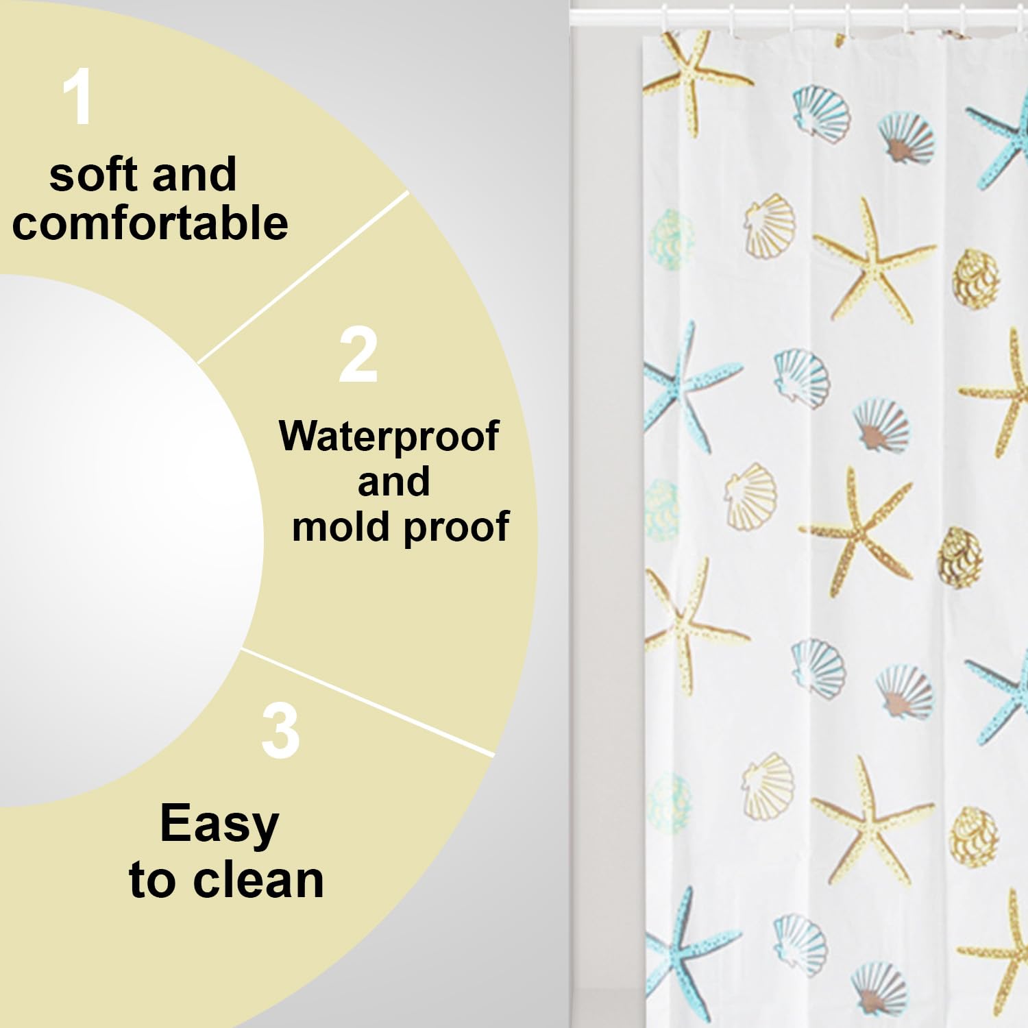 Introducing the Kuber Industries PEVA Shower Curtain- a perfect addition to your bathroom decor! This set includes a 7 feet long waterproof shower curtain and 12 hooks, providing you with both style and functionality. Crafted with high-quality polyester material, the shower curtain features a beautiful print that adds an elegant touch to any bathroom. The curtain's length of 7 feet ensures that it covers your shower area effectively, keeping water off your bathroom floor. Kuber Industries understands the importance of easy installation, which is why our shower curtain set is designed for quick and hassle-free setup. It is also machine washable, making it convenient to clean and maintain. Not only does this shower curtain set enhance the aesthetics of your bathroom, but it also meets the expectations of our valued customers. With great quality and a functional design, our Kuber Industries Shower Curtain is built to last. It will not sag or fall down like cheaply made alternatives. The Kuber Industries Shower Curtain comes in a multicolor print, with a pack size of three. Upgrade your bathroom decor with the Kuber Industries Shower Curtain today and enjoy the benefits of an easy-to-install, high-quality, and aesthetically pleasing addition to your space.Detailed Specifications: