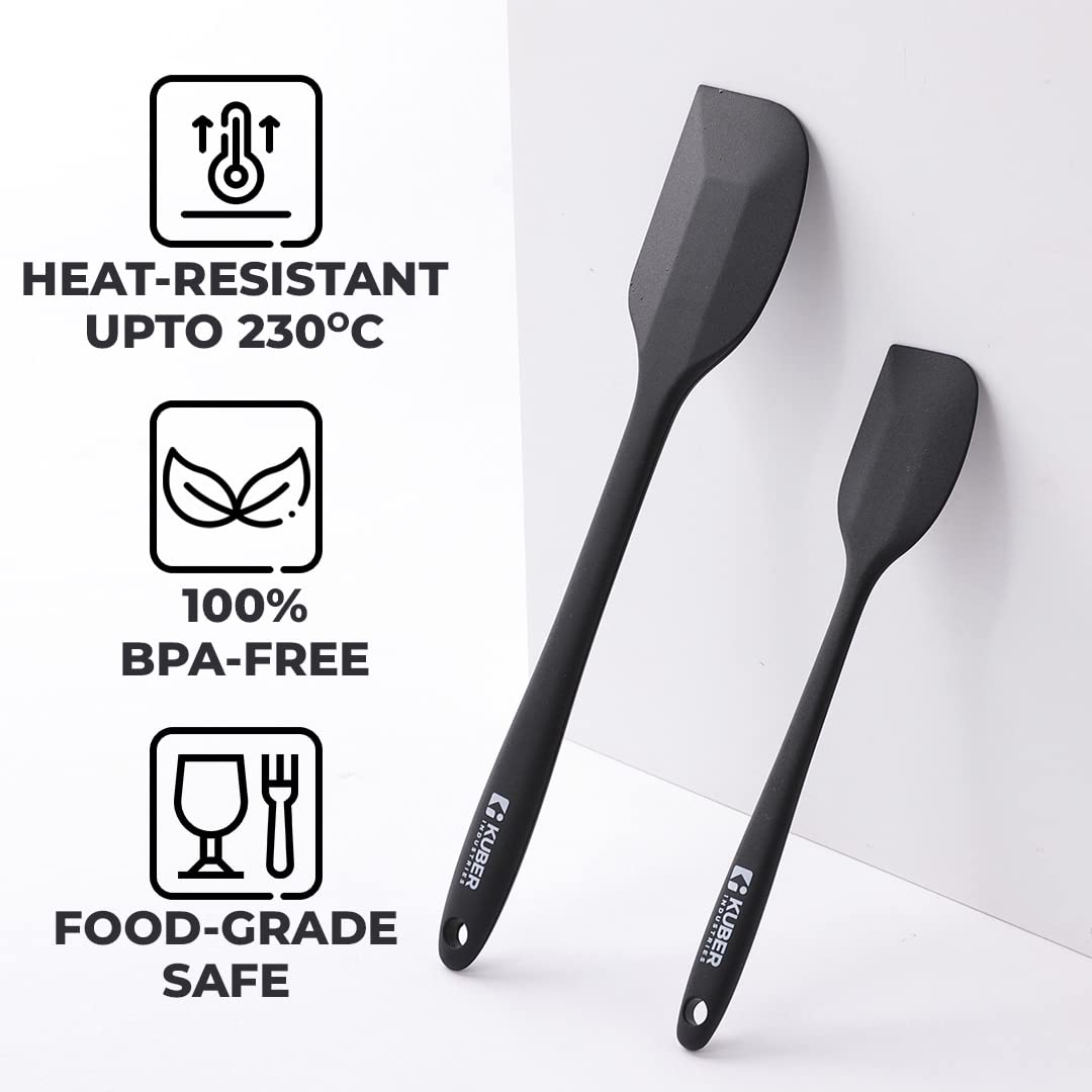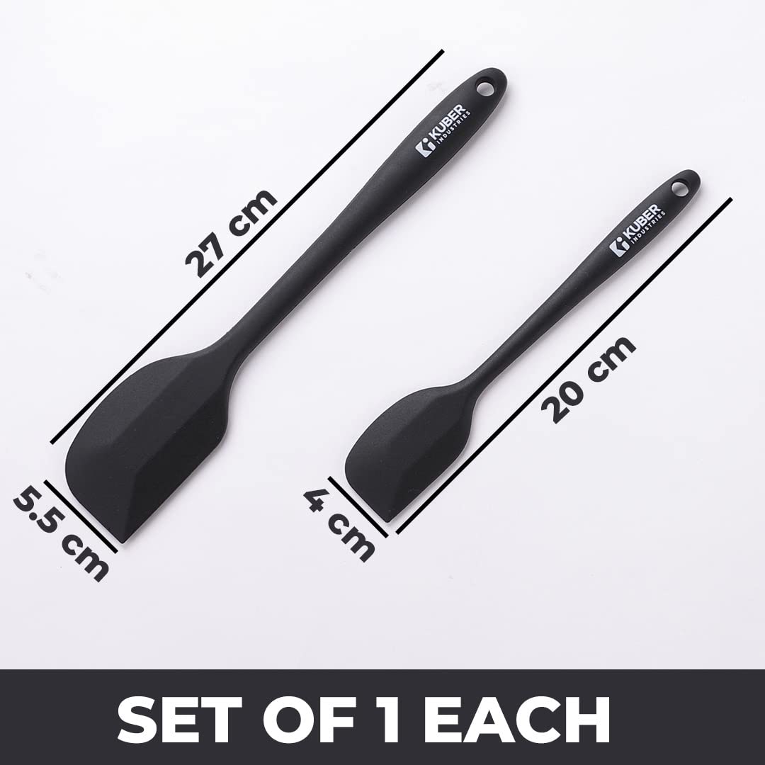 Introducing the Kuber Industries Spatula Cooking Set, the perfect addition to your kitchen tools collection! Made from high-quality food-grade silicone, there are 2 measurements a large spatula measuring 27 x 5.5 cm and a small spatula measuring 20 x 4 cm. The BPA-free and food-grade material ensures that these spatulas are safe for all your cooking and baking needs. Whether you're whipping up a cake or stirring a savory sauce, these spatulas will be an excellent addition to your measuring cups and spoons.