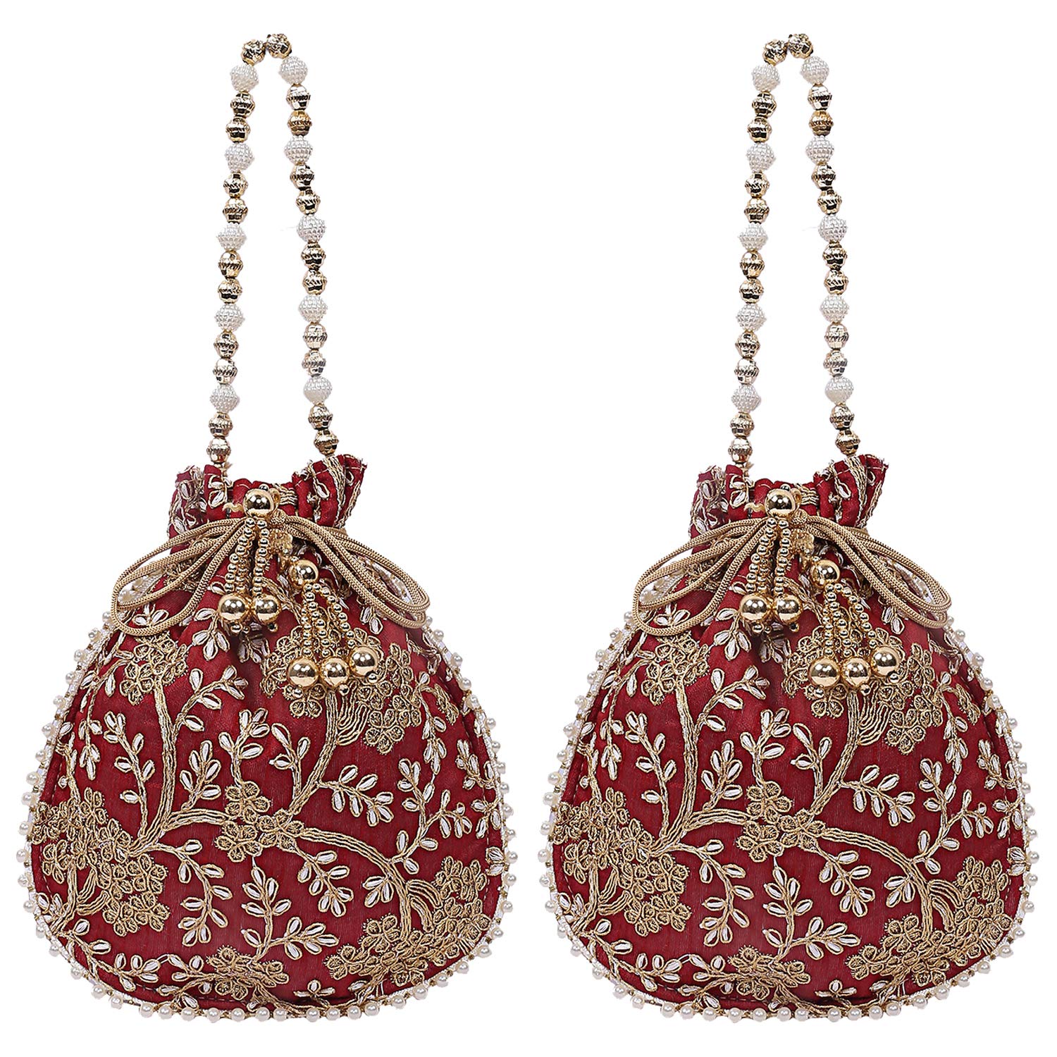 Kuber Industries potli bag is made of high quality silk material with a unique and attractive embroidery art work. This potli is good match with both Indian and western outfits and are superb for wedding and festive parties. This would be best complement to your designer Saree, lenhga or any other kind of dress. This is the combination of traditional and modern embroidery work and this potli bag makes you glamorous and unique among your friends. This is enough to keep your accessories and all needed essentials and it can be a best gift for any woman.Detailed Specifications: