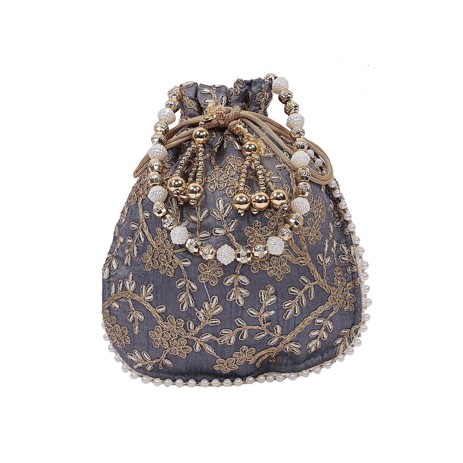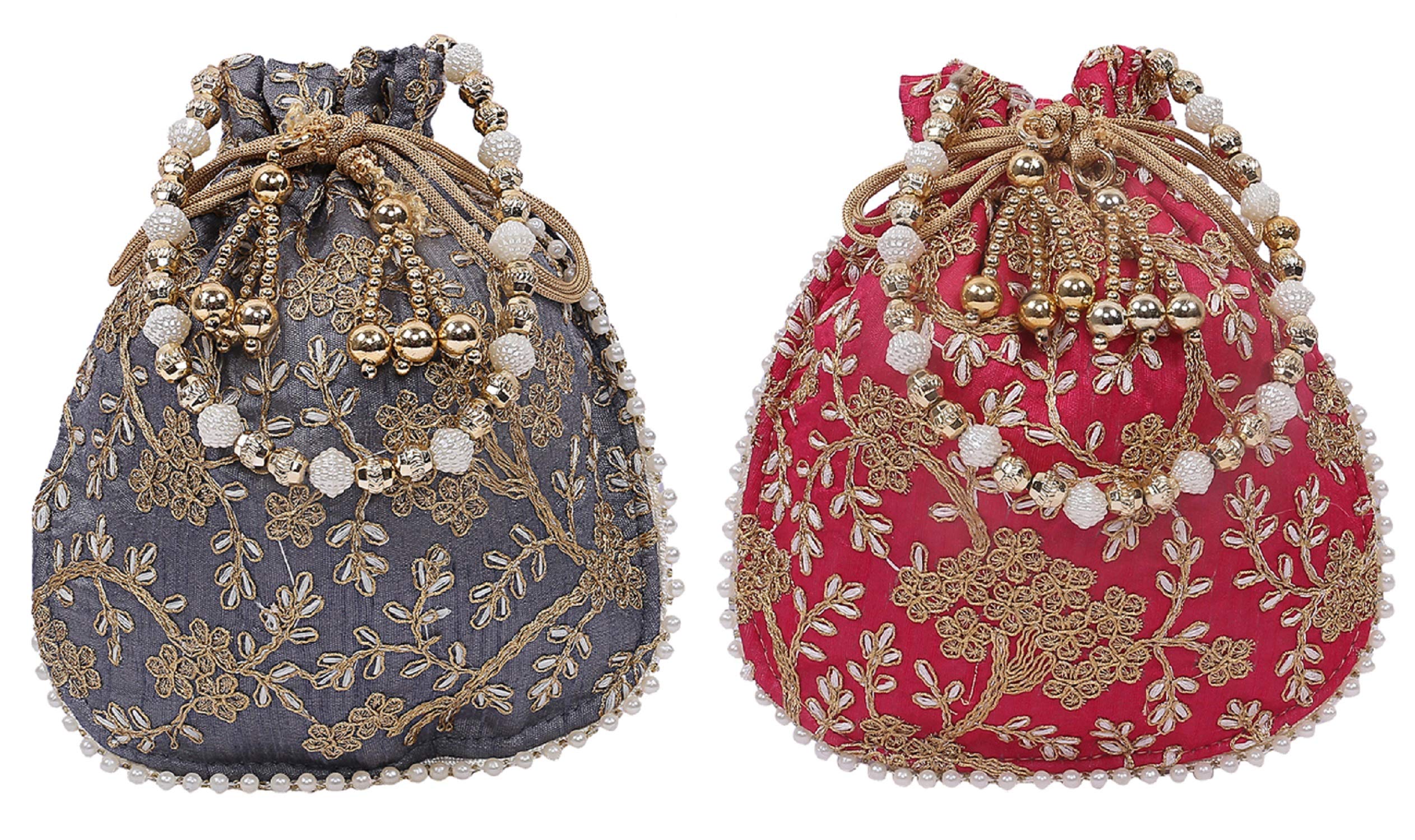 Kuber Industries Potli bag is made of high quality silk material with a unique and attractive embroidery art work. This potli is good match with both Indian and western outfits and are superb for wedding and festive parties. This would be best complement to your designer saree, lenhga or any other kind of dress. This is the combination of traditional and modern embroidery work and this potli bag makes you glamorous and unique among your friends. This is enough to keep your accessories and all needed essentials and it can be a best gift for any woman.Kuber Industries is a customer-loved brand that brings you everything you need to make a house a home. Right from nifty storage solutions to smart kitchen essentials, our products are known for their premium and durable quality.