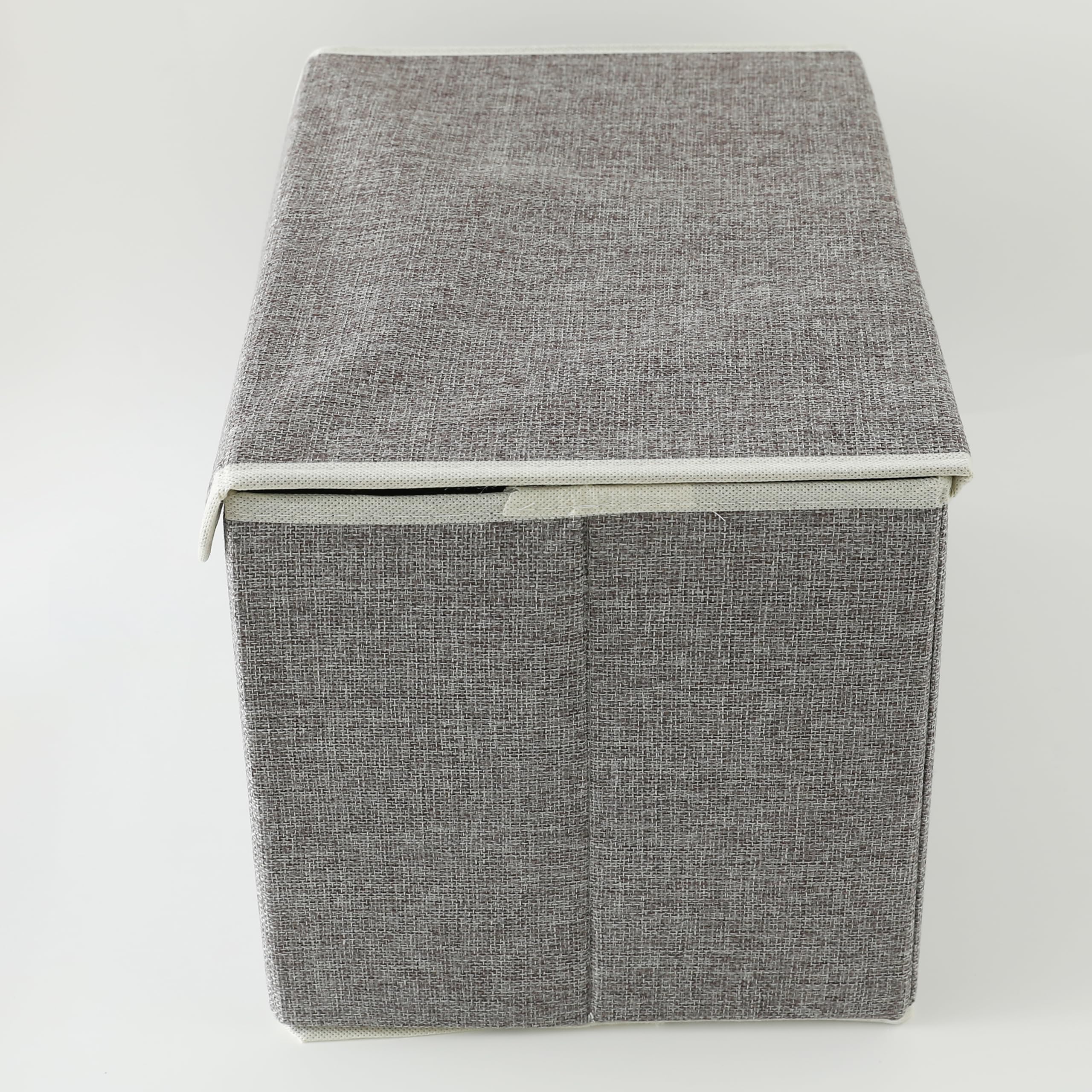 Kuber Industries Foldable Storage Box with Lid is a versatile and stylish storage solution made from high-quality linen fabric and sturdy cardboard construction. Its foldable design allows for easy assembly and space-saving storage when not in use. The included lid helps protect stored items from dust, dirt, and moisture, while a convenient front handle ensures easy access. This storage box is portable and suitable for organizing various items such as toys, clothes, books, and more. With its durable construction and neutral design, it complements a variety of room decors while keeping your space clutter-free.Detailed Specifications: