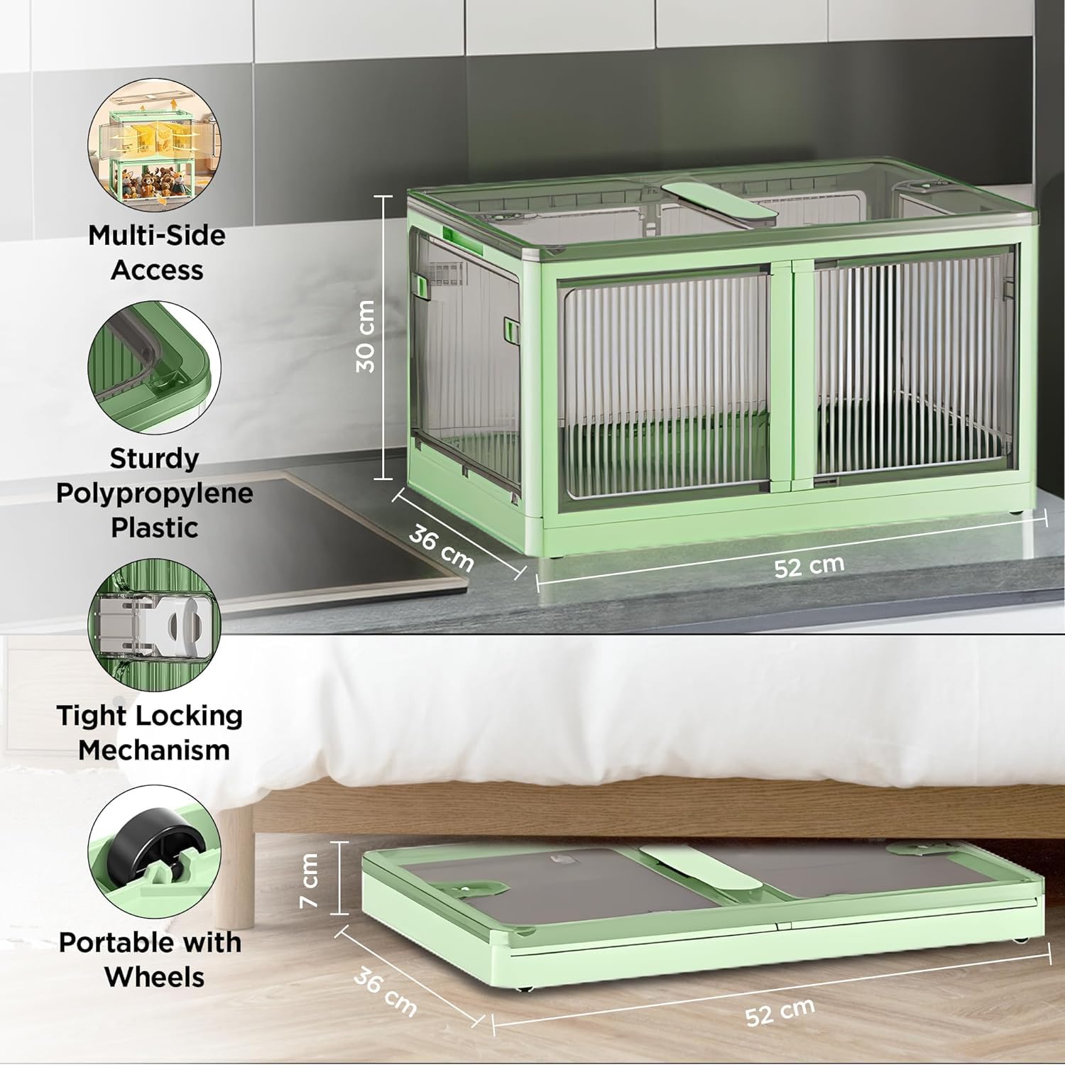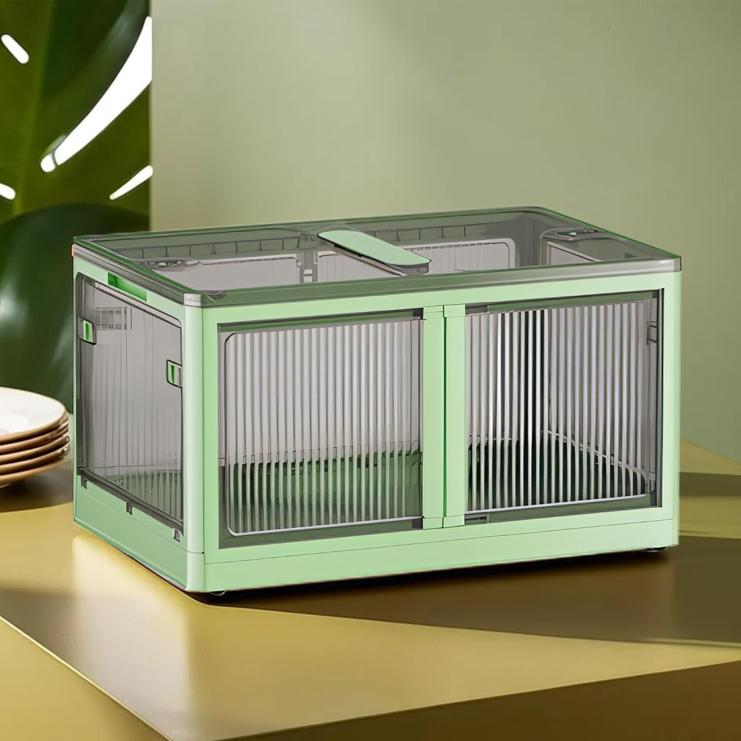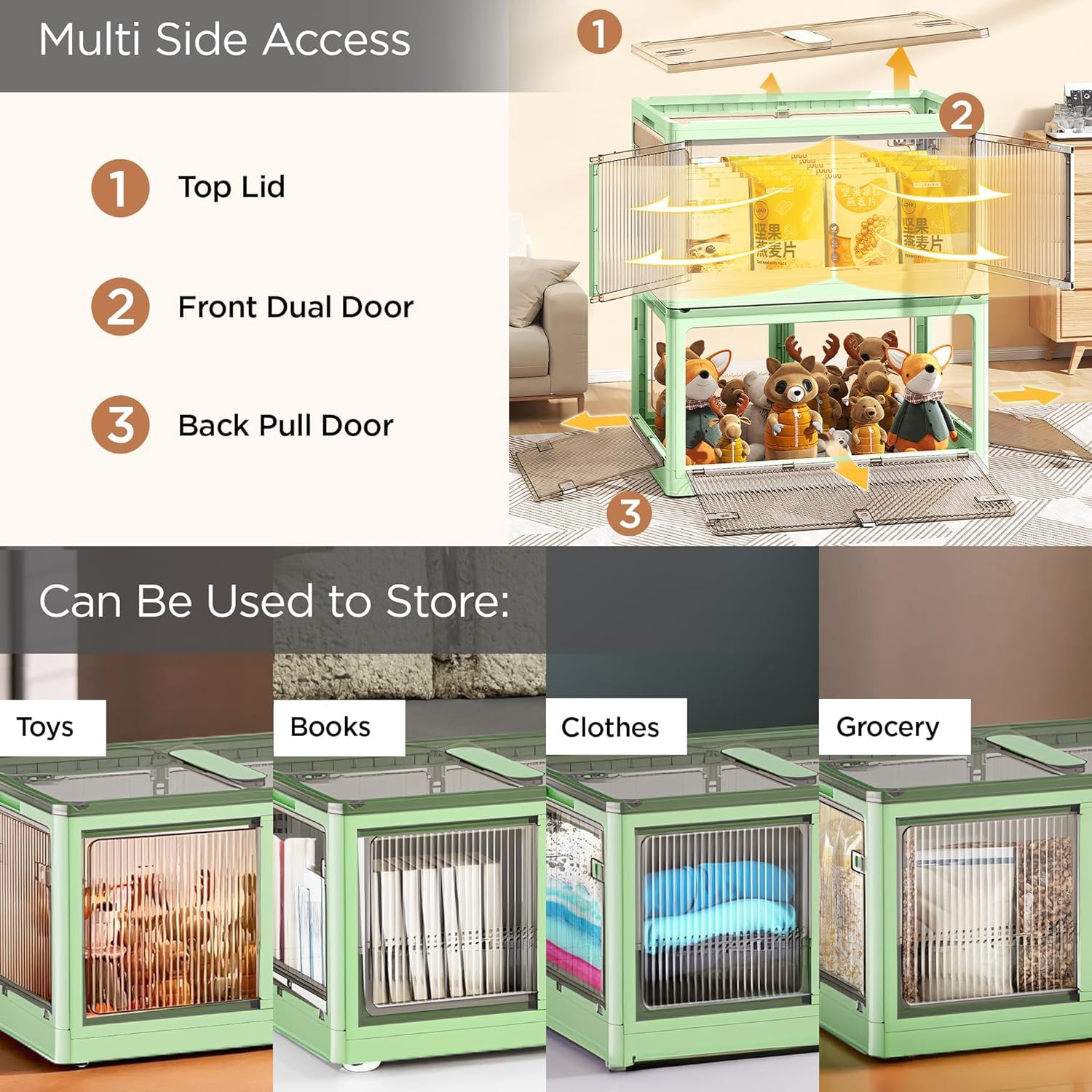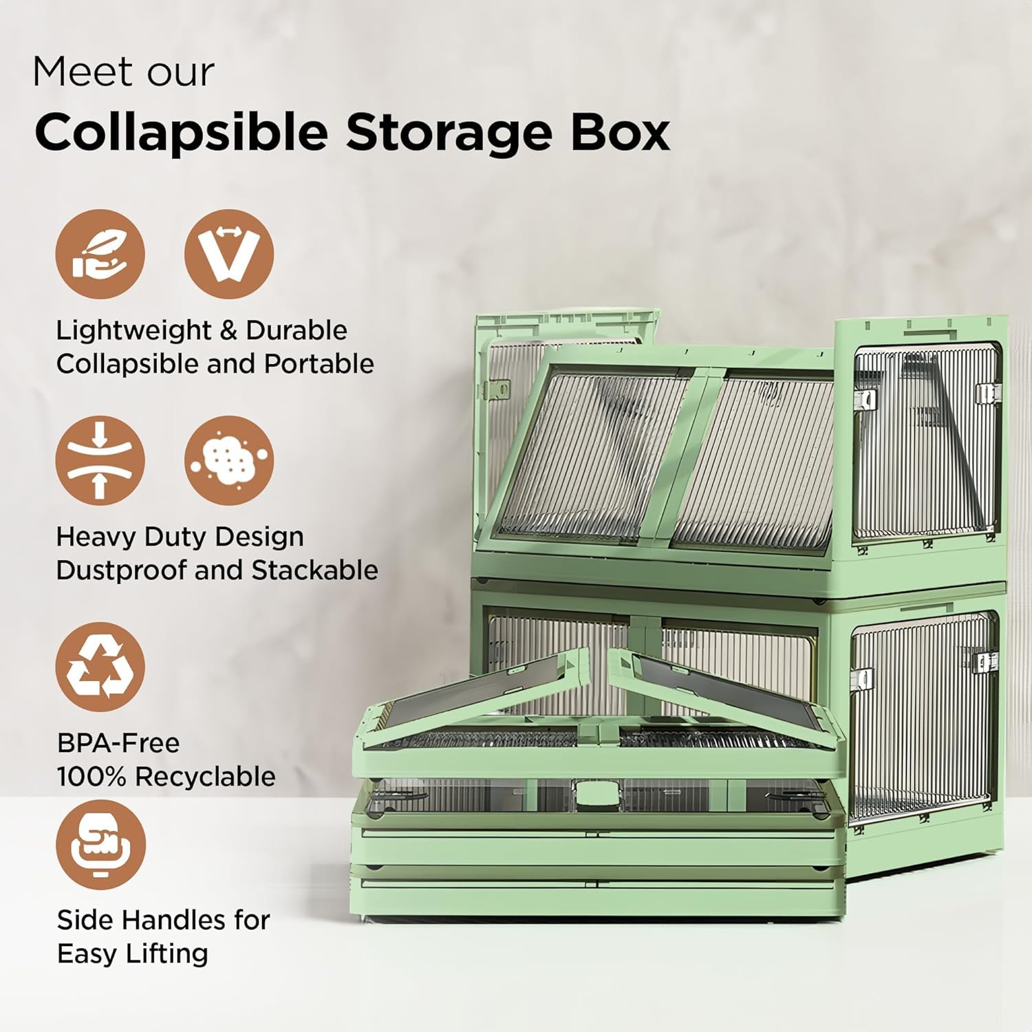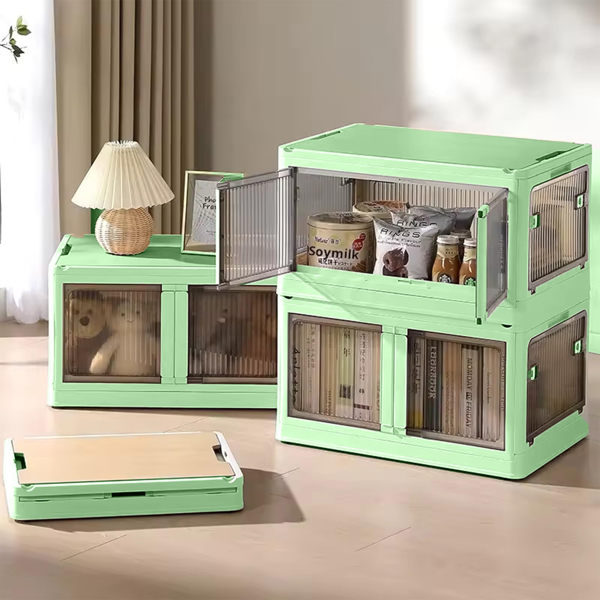 The Homestic Stackable Storage Box offering a versatile and efficient storage solution for your home or office. The stackable storage bins are made of durable and heavy-duty PP material, which is sturdy and durable. This bin is designed with two easy access doors that can open outwards. It also boasts a top opening lid with a folding mechanism, making it perfect for storing larger items or to store multiple items in the same bin. The Collapsible storage bins with Lids, and a foldable design make them stored easily when not in use.Detailed Specifications: