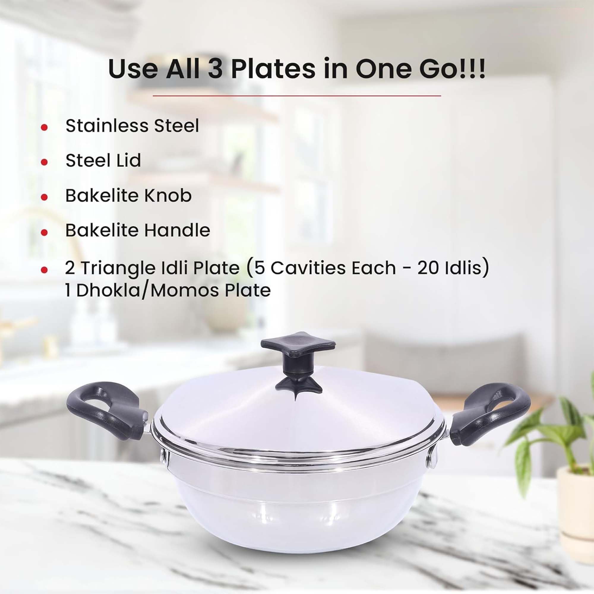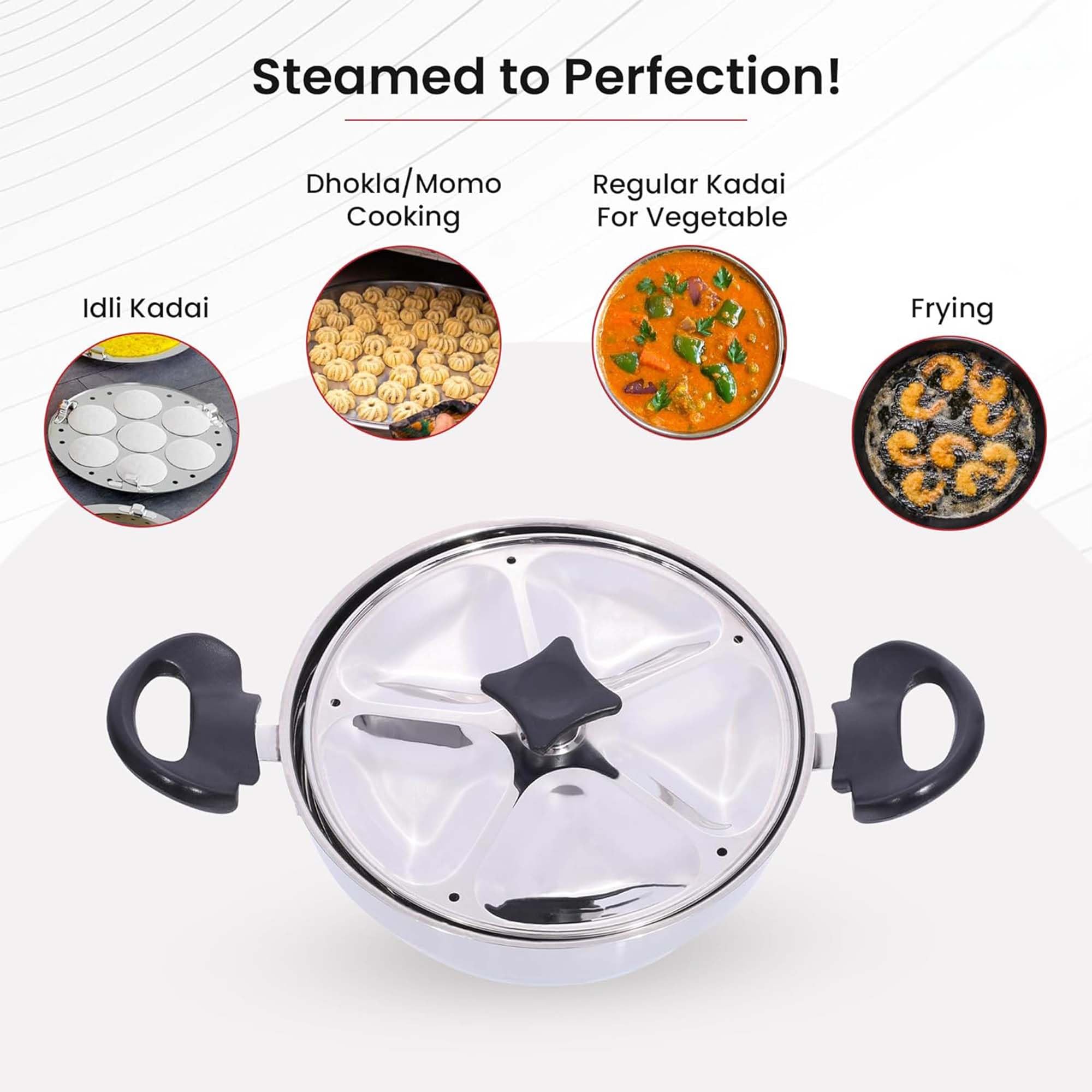 Kuber Industries brings you this multi cooking pot, designed for preparing idli, dhokla, mini idlies, and modaks with ease. The multipurpose steamer for cooking helps you create a variety of meals without inconvenience. Our multipurpose kadai includes a lid, along with idly plates, a steamer plate, and a dhokla plate, making sure your cooking experience is efficient. The multi kadai for idli is strong enough for daily use, and this idli pot supports multiple recipes effortlessly, ensuring flexibility in your kitchen.Detailed Specifications: