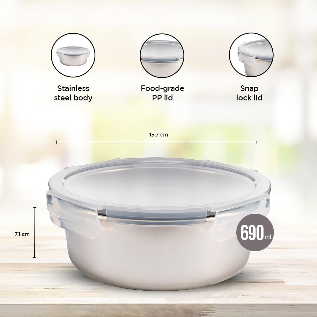 Immerse yourself in lunchtime perfection with Kuber Industries 's stainless steel lunch box, meticulously crafted for durability, corrosion resistance, and effortless cleaning. The sleek rectangular or square design, coupled with a secure, hinged polypropylene (PP) lid, ensures a leak-proof seal and a modern aesthetic. The PP lid, known for its durability and heat resistance, guarantees freshness during transit with its airtight or leak-proof properties. Cleaning is a breeze – the stainless steel body wipes clean effortlessly, while the PP lid can be swiftly washed with mild soap and water. Embrace the epitome of lunchtime sophistication, blending style, resilience, temperature control, and easy maintenance in one exceptional stainless steel lunch box.Detailed Specifications: