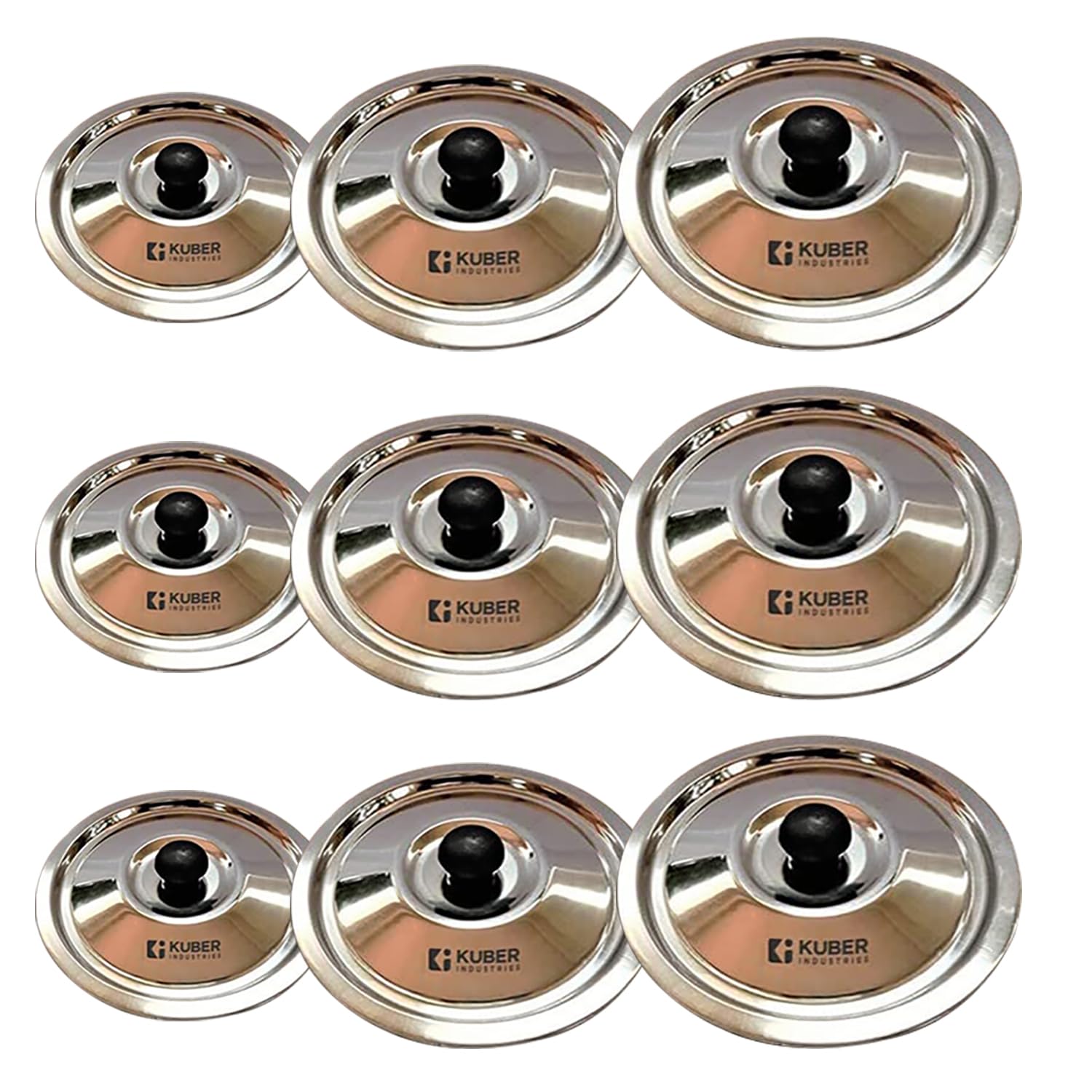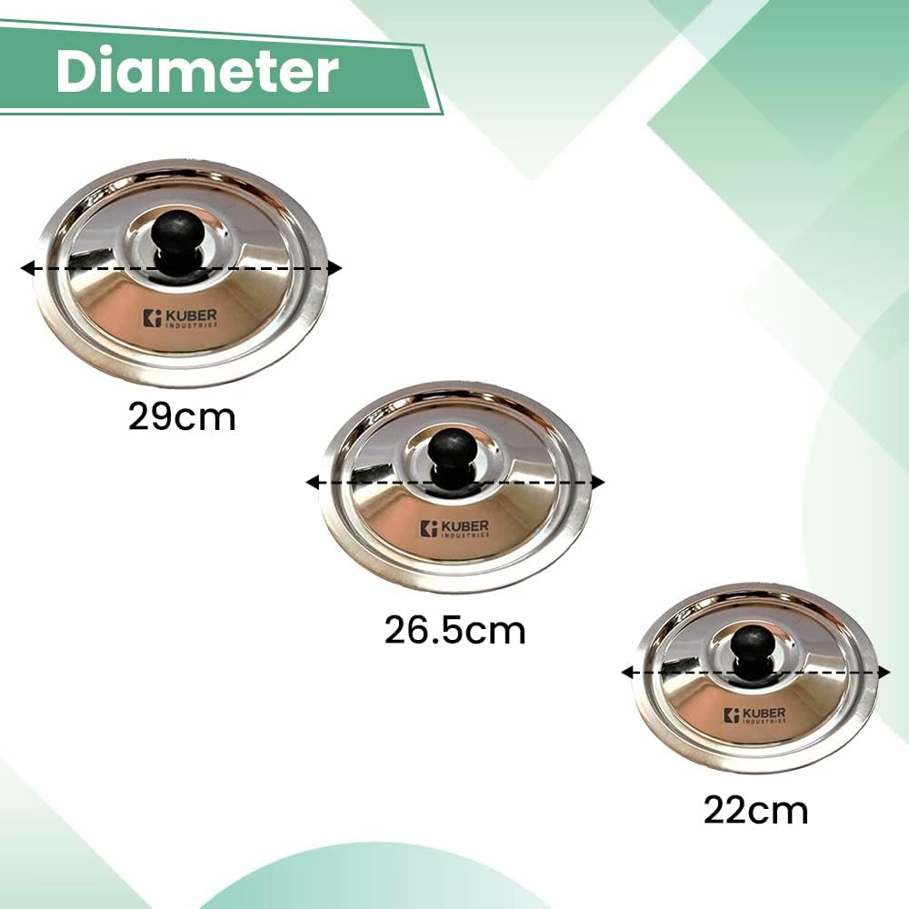 This cooking lid set for home is made of food grade stainless steel, ensuring safe cooking. They come with sturdy knobs, making it easy to hold, and are compatible with all kinds of pots and pans. Their blunt edge design and shiny finish gives an elegant touch to your stainless steel kitchen cookware. Available in a set of 5, these stainless steel kitchen lids are highly durable and easy to clean, making it the perfect cooking set for your kitchen.Detailed Specifications: