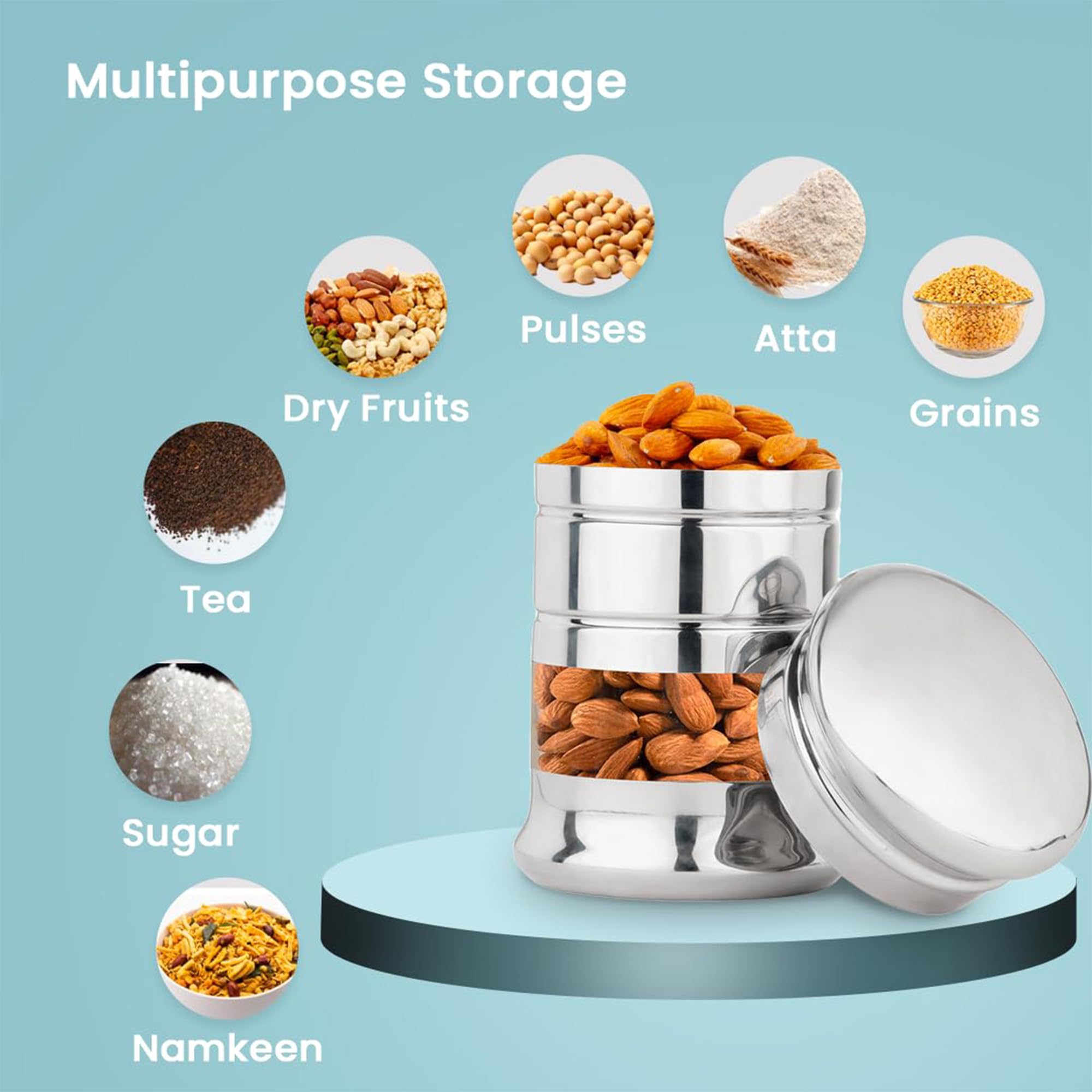 Our stainless steel containers for kitchen provide strong storage solutions. These air tight containers for kitchen storage keep food fresh and organized. This set includes a transparent see-through storage container with lid, which helps you identify contents quickly. You can store dal and pulses without any inconvenience because of the air tight seal. These containers, designed for easy access, have lids that are simple to open and close. We made sure they are tough and reliable so that you can use them daily. They offer multipurpose use since you can store various items securely.