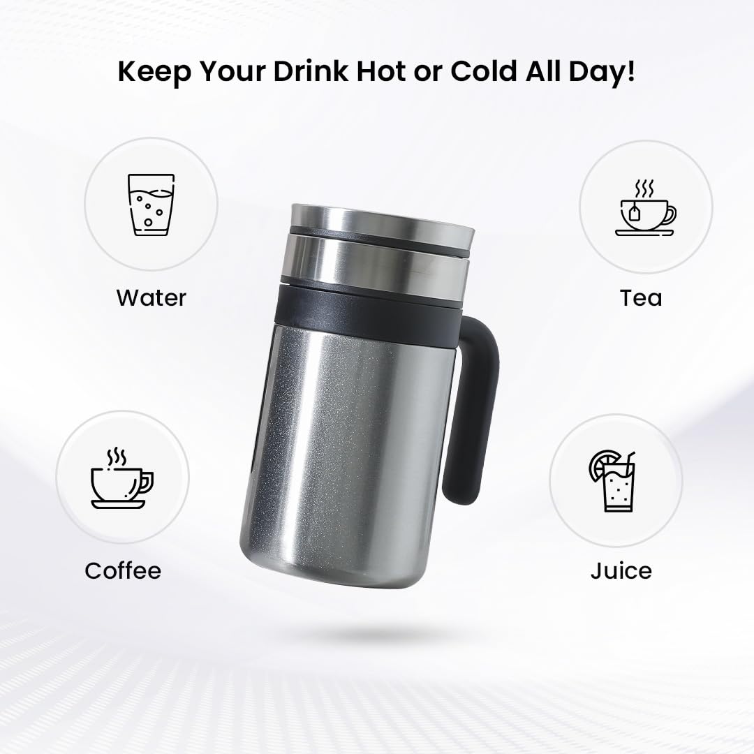 Homestic Stainless Steel Vacuum Insulated Travel Mug, the perfect companion for those on the go. Designed to keep your beverages hot or cold for extended periods, this travel mug combines functionality with sleek style. Crafted with high-quality stainless steel and featuring vacuum insulation technology, it ensures your drinks stay at the perfect temperature while you're out and about. Experience convenience and reliability with the Homestic Stainless Steel Vacuum Insulated Travel Mug.