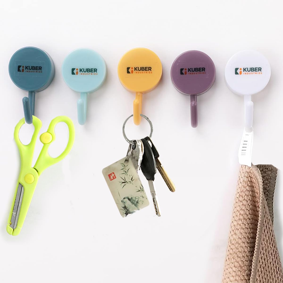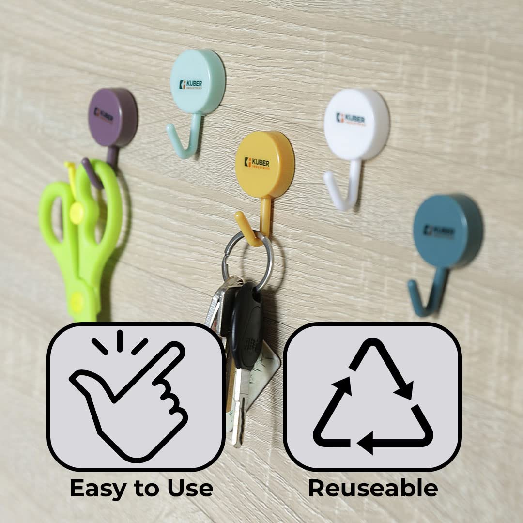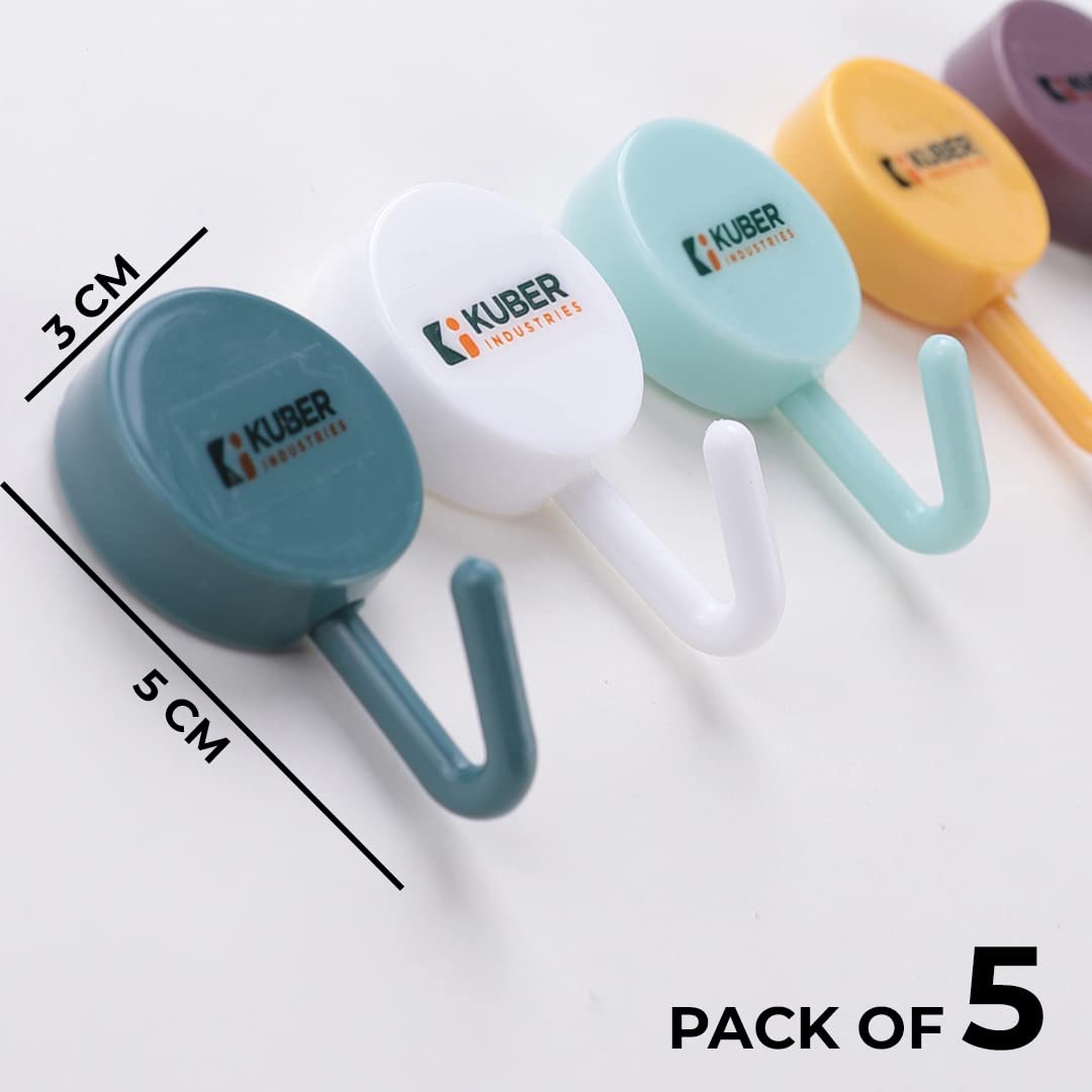 Homestic wall hooks for hanging in the bathroom & kitchen are made of premium quality PP plastic which makes it sturdy and durable while having a sleek fit. Each cloth hanger hook attaches to the wall surface easily with a strong, self-adhesive sticker. They come in a set of 5 multi-coloured hooks and are easy to install on a flat wall surface. There is no need for hammering, noisy drilling, and technician support. Compatible with most wall surfaces such as glass, tiles, and cement. They are easy to fit and level and can be installed within seconds according to your height and location preferences. Remove them just as easily as you installed them, they are ideal for rented apartments. Compact in size measuring just (3x1x5) CM yet can hold all kinds of towels ranging from the body to face towels making them the perfect bathroom accessories of today that provide storage solutions for cramped spaces. As a kitchen organizer, it will hang your cloth towels making them easier to pick up & use while cooking. Use them as cloth hanger wall hooks for drying clothes inside your bathroom when you are running out of space on your clothing line.Detailed Specifications: