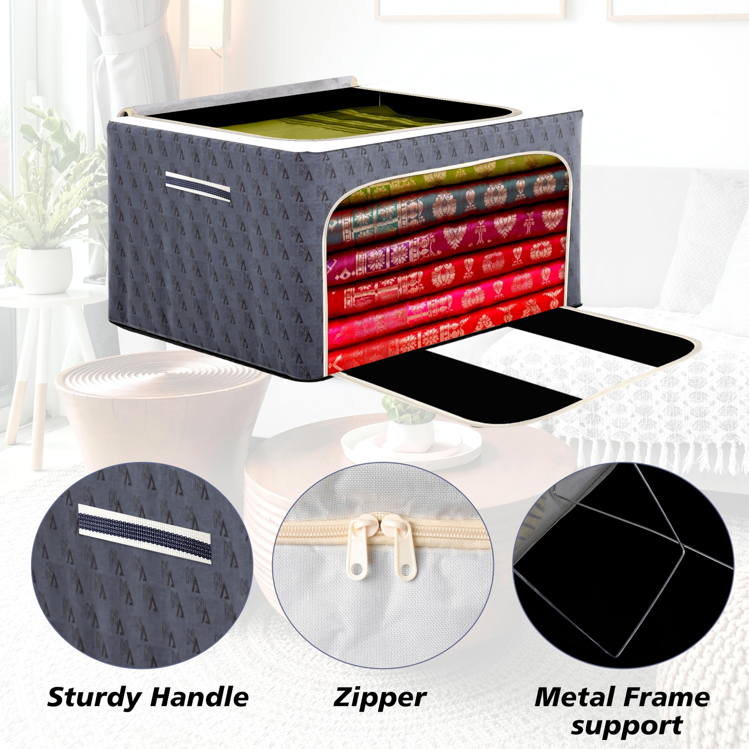 Kuber Industries is a Company that specializes in home and kitchen products, including storage solutions. Their steel frame saree cover is a product designed to help you store and organize your sarees.The saree cover is made of durable and long-lasting materials, including a steel frame and a non-woven fabric cover. The steel frame provides sturdy support to the cover, making it capable of holding multiple sarees at once.Detailed Specifications: