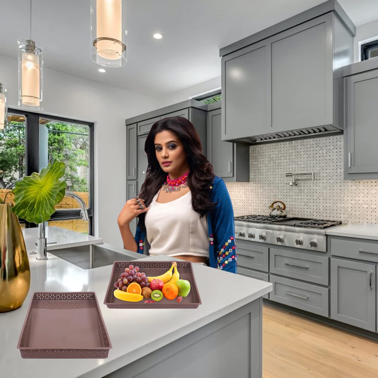 Kuber Industries Has Brought This Storage Tray. It is made of strong plastic material. It is capable of being brought and carried anywhere. It can be used to store and display fruits and vegetables in your kitchen and shop. With the help of this tray, you can separate your fruits and vegetables. Apart from storing vegetables, you can also use it to keep files or important papers in your office. Hence we can say that this is a versatile tray which can be used for many of your tasks. It comes in a rectangular shape and the color may vary depending on the availability. This storage tray can be ideal for offices, schools, shops, hospitals, home and kitchen.Detailed Specifications:
