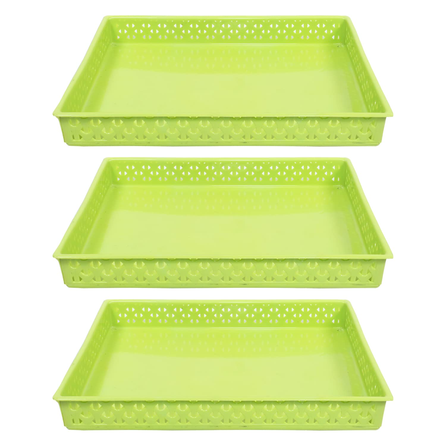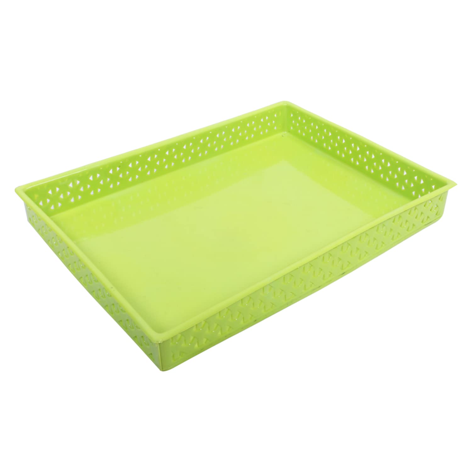 Kuber Industries Has Brought This Storage Tray. It is made of strong plastic material. It is capable of being brought and carried anywhere. It can be used to store and display fruits and vegetables in your kitchen and shop. With the help of this tray, you can separate your fruits and vegetables. Apart from storing vegetables, you can also use it to keep files or important papers in your office. Hence we can say that this is a versatile tray which can be used for many of your tasks. It comes in a rectangular shape and the color may vary depending on the availability. This storage tray can be ideal for offices, schools, shops, hospitals, home and kitchen.Detailed Specifications: