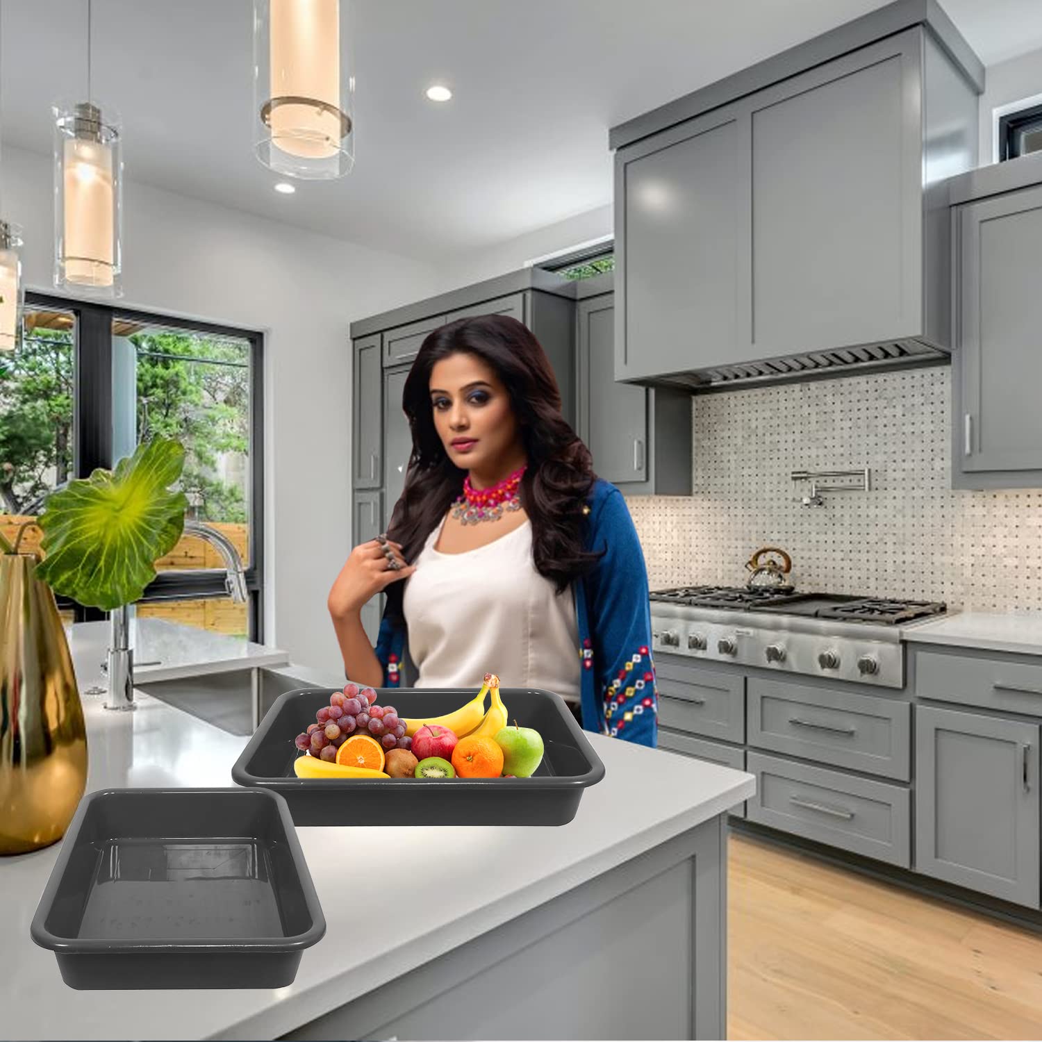 Kuber Industries Has Brought This Storage Tray. It is made of strong plastic material. It is capable of being brought and carried anywhere. It can be used to store and display fruits and vegetables in your kitchen and shop. With the help of this tray, you can separate your fruits and vegetables. Apart from storing vegetables, you can also use it to keep files or important papers in your office. Hence we can say that this is a versatile tray which can be used for many of your tasks. It comes in a rectangular shape and the color may vary depending on the availability. This storage tray can be ideal for offices, schools, shops, hospitals, home and kitchen.Detailed Specifications: