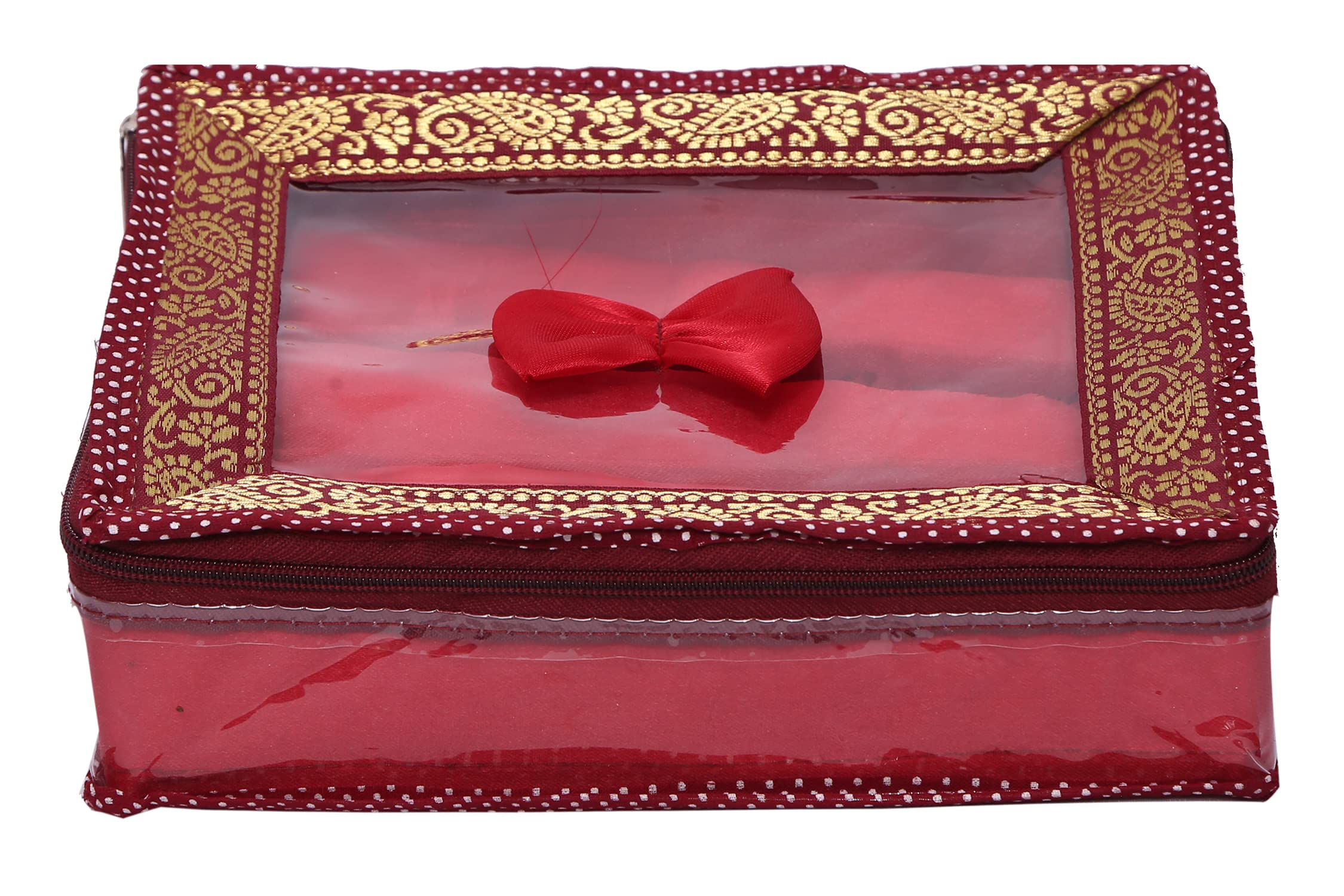 Being a noteworthy enterprise of this industry, we are offering a wide spectrum of 3 Rods Bangle Box. Bangle box is used to store your dearly bangles safely. The user can view the bangles from the transparent sheet(more durable and thicker) above the bangle box without opening it. A supportive frame is installed on the boundaries of the transparent box which serves better safety of the bangles..Kuber Industries offering a quality tested array of Saree Cover. The Saree Covers, Bangle Box, Jewellery Kit we offer is made by using supreme quality material which is procured from leading and authentic vendors of the industry.Detailed Specifications: