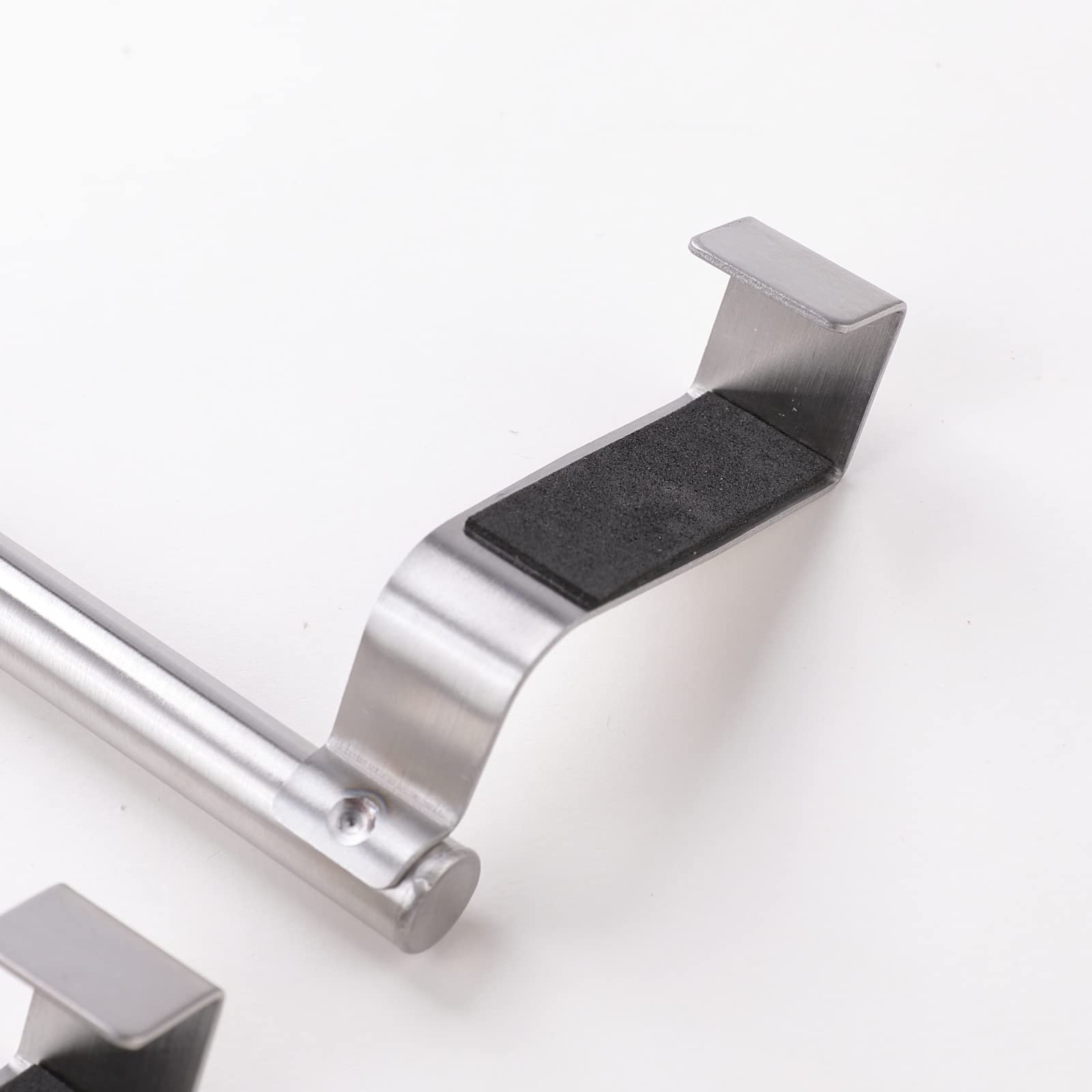 Kuber Industries towel hanger for bathroom is made of Good quality stainless steel which makes it sturdy and durable while having an attractive finish. Each cloth hanger attaches to the wall surface easily with a strong, self-adhesive sticker. They come in a pack of 2 and are easy to install on a flat wall surface. There is no need for hammering, noisy drilling, and technician support. Compatible with most wall surfaces such as glass, tiles, and cement. They are easy to fit and level and can be installed within seconds according to your height and location preferences. Remove them just as easily as you installed them, they are ideal for rented apartments. Compact in size measuring just 24x9x8 CM yet can store all sizes of towels ranging from the body to face towels making them the perfect bathroom accessories of today that provide storage solutions for cramped spaces. As a kitchen organiser, it will hang your paper towels and cloth towels making them easier to pick up & use while cooking. Use them as a cloth hanger for drying clothes inside your bathroom when you are running out of space on your clothing line. | | | |
