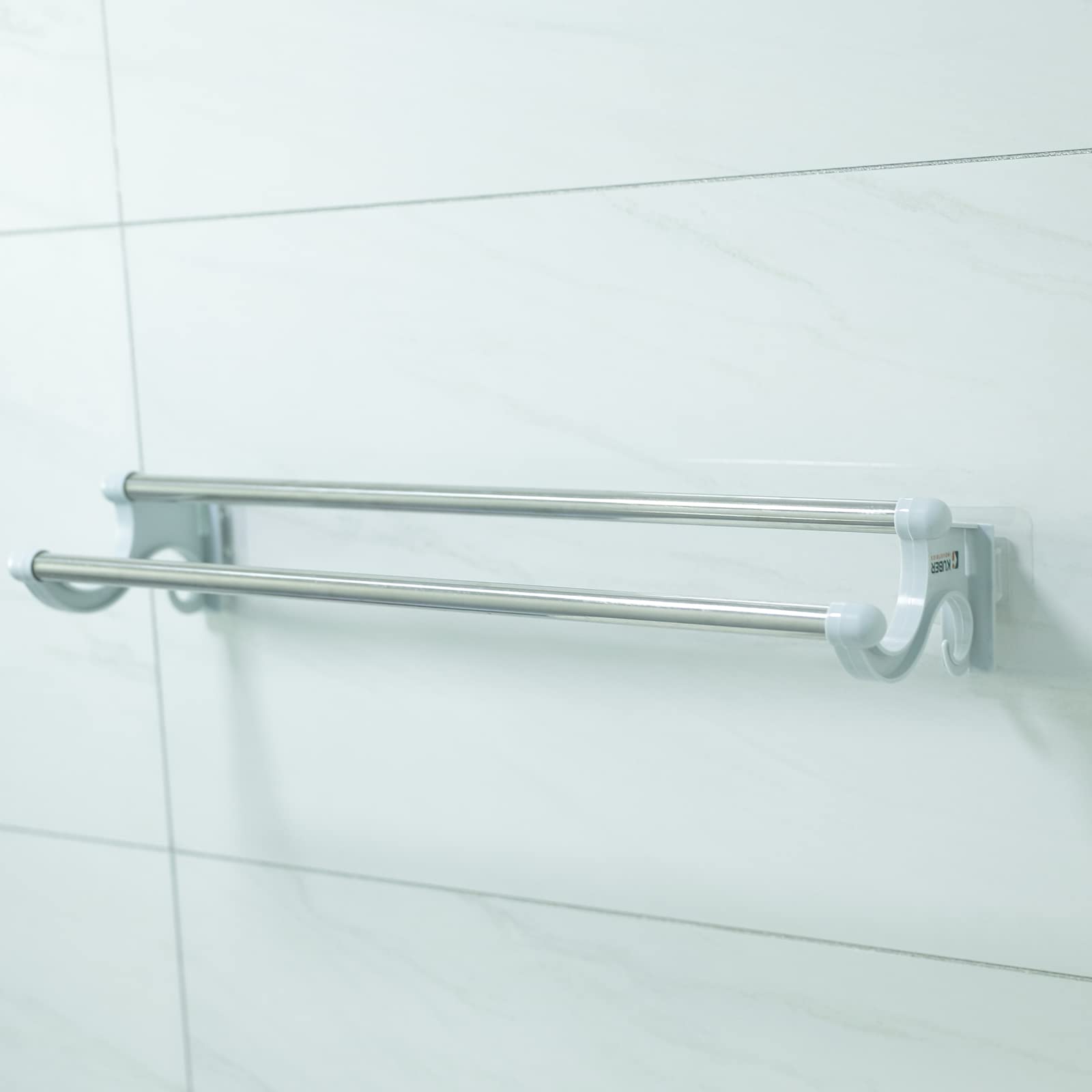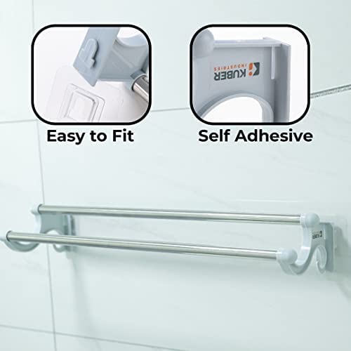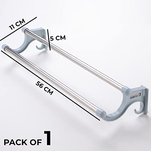 Homestic towel hanger for bathroom has a premium quality PP material which makes it sturdy and durable while having an attractive finish. Each cloth hanger attaches to the wall surface easily with the strong, self-adhesive sticker. They come in a pack of 3 and are easy to install on a flat wall surface. There is no need for hammering, noisy drilling, and technician support. Compatible with most wall surfaces such as glass, tiles, and cement. They are easy to fit and level and can be installed within seconds according to your height and location preferences. Remove them just as easily as you installed them, they are ideal for rented apartments. Compact in size measuring just 56 x 5 x 11 CM yet can store all sizes of towels ranging from the body to face towels making them the perfect bathroom accessories of today that provide storage solutions for cramped spaces. As a kitchen organiser, it will hang your paper towels and cloth towels making them easier to pick up & use while cooking. Use them as a cloth hanger for drying clothes inside your bathroom when you are running out of space on your clothing line. | | | |