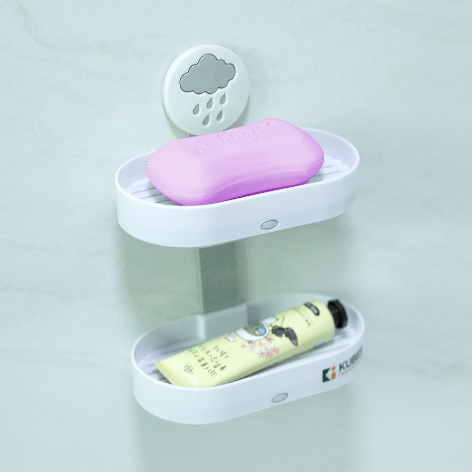 Homestic Two Tier Hanging Soap Holder for Bathroom is built with superior quality ABS material which makes it durable. Made in a pretty white & grey combination, it has a quirky design of a cloud adding character to it. Ideal for modern homes, elevate your bathroom aesthetics with this one and make it among your favorite bathroom accessories. The two-tier soap case takes up minimal space measuring 72 x 41 x 36 CM and is easy to install too. With the help of its self-adhesive sticker, it can be installed on the wall surface of your choice without the hassle of loud drilling or any other hardware within seconds. The soap stand is compatible with most commercial & handmade bar soaps and can also be used to store your other bath products such as loofahs and body creams. Adding to its functionality is the unique self drainage system with integrated lines that are created in the bottom to prevent water accumulation and make it waterproof. Along with that, the raised ridges ensure that your soap will not soak in the water, stay clean, and dry fast.Detailed Specifications: