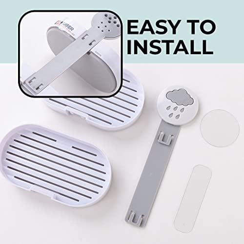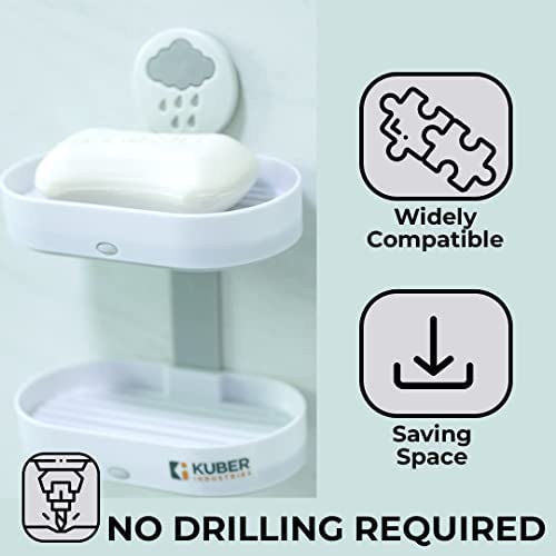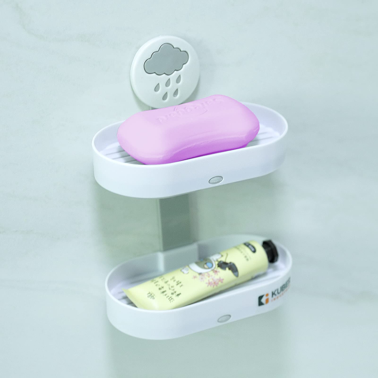 Kuber Industries Two Tier Hanging Soap Holder for Bathroom is built with superior quality ABS material which makes it durable. Made in a pretty white & grey combination, it has a quirky design of a cloud adding character to it. Ideal for modern homes, elevate your bathroom aesthetics with this one and make it among your favorite bathroom accessories. The two-tier soap case takes up minimal space measuring 72 x 41 x 36 CM and is easy to install too. With the help of its self-adhesive sticker, it can be installed on the wall surface of your choice without the hassle of loud drilling or any other hardware within seconds. The soap stand is compatible with most commercial & handmade bar soaps and can also be used to store your other bath products such as loofahs and body creams. Adding to its functionality is the unique self drainage system with integrated lines that are created in the bottom to prevent water accumulation and make it waterproof. Along with that, the raised ridges ensure that your soap will not soak in the water, stay clean, and dry fast. | | | |