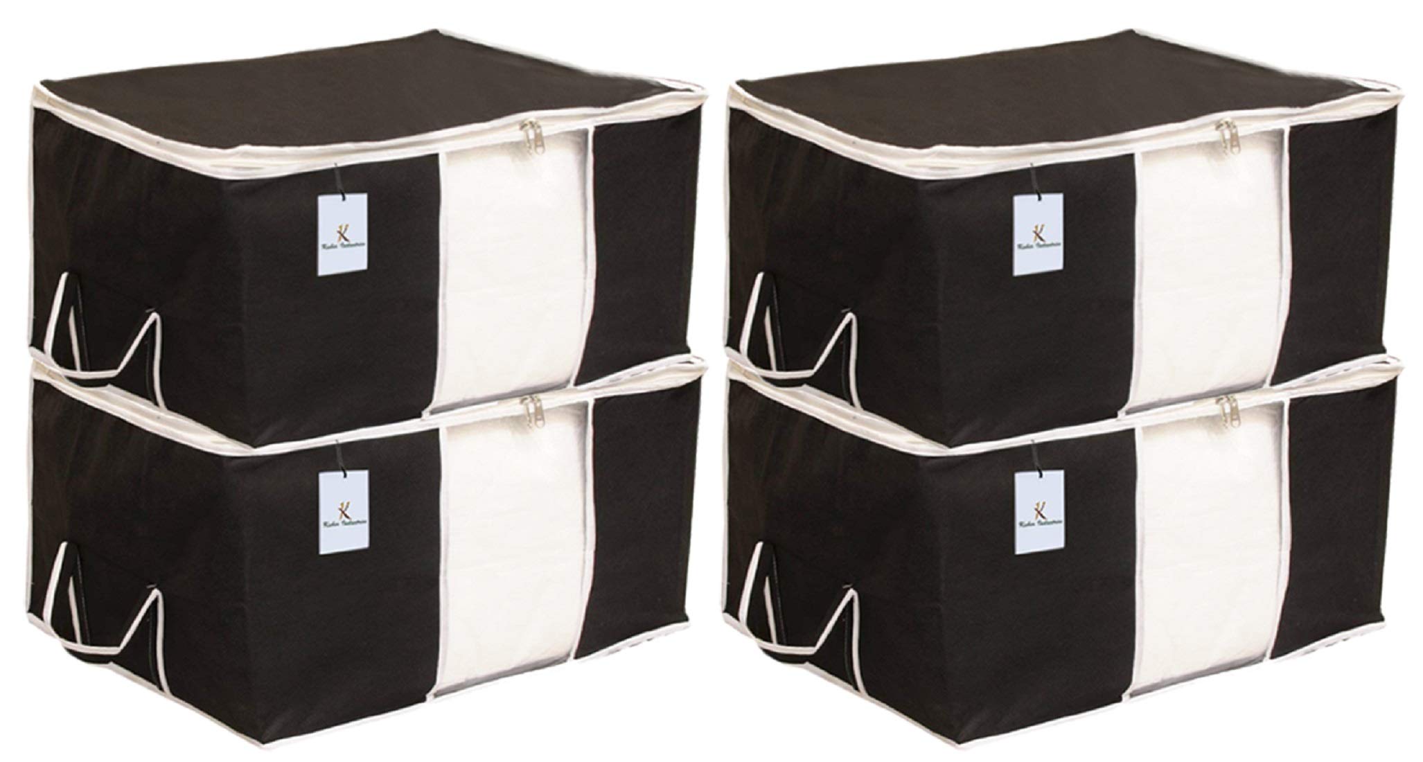 Folding, durable and non woven fabric, easy storage fabric sweater clothes blanket storage bag suitable for storing clothes, blankets, sweater, quilts, coats and other. Easy to organize all your stuff and take out your clothes from mildew, dust, moisture, insects, anti-discoloration as they are well stored. Material - non woven fabric, color - black, dimensions - 65 x 47 x 33 cm. Design- plain. Package contents: 4 under bed storage bag. Carefully stitched to offer additional strength. Transparent see-through window for easy identification of contents.