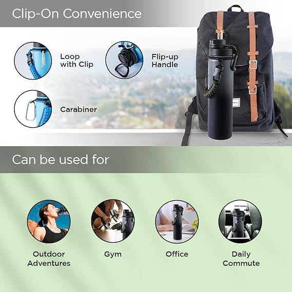 Homestic Presents the Perfect Companion for your hydration needs with our Vacuum Insulated Flask Water Bottle featuring a convenient rope for easy carrying. Crafted with precision and designed to meet your active lifestyle, this water bottle keeps your beverages at the ideal temperature. Whether it's a piping hot drink to warm you up on a chilly morning or a refreshingly cold sip to quench your thirst under the scorching sun, this bottle has you covered. Its vacuum insulation technology ensures that your drinks stay at the desired temperature for longer, offering convenience and a touch of elegance on the go.Detailed Specifications: