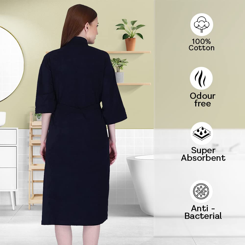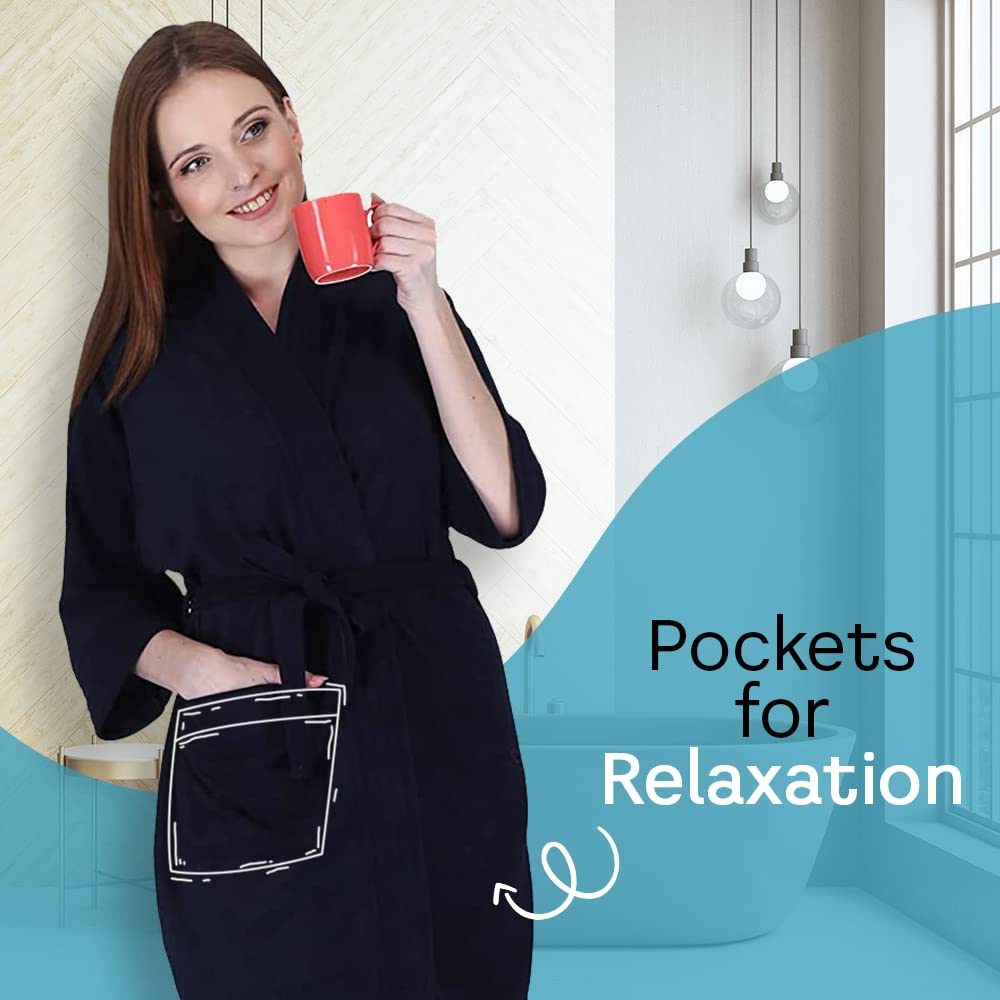 Homestic brings in stylish and comfortable Bathrobes. This solid bathrobe has an open front, short sleeves, a patch pocket on the right side of the front, and belt loops on the waist. Comes with a belt. This Bathrobe for Men and Bathrobe for Women is soft, comfortable and absorbs quickly. A bathrobe for girls can be paired to be a bathrobe set for couples. This is perfect to use after a shower or swim.Introducing the Kuber Industries Bathrobe - your perfect companion for ultimate relaxation after a bath or shower. Made from high-quality terry cloth fabric, this bathrobe is more absorbent than towels, making it an excellent choice for drying off quickly.