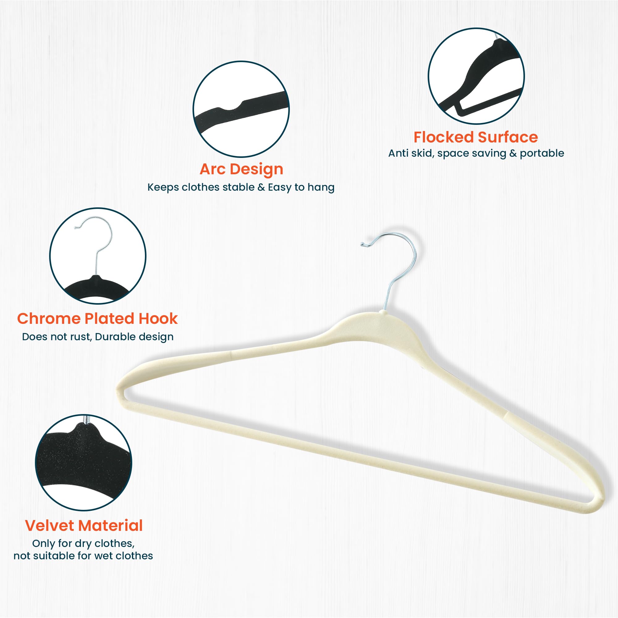 Homestic Cloth Hangers, a perfect blend of functionality and durability to keep your wardrobe organized and your clothes in pristine condition. These hangers are thoughtfully designed with a combination of abs velvet material for the body and a chromed Plated Steel hook, ensuring long-lasting performance. Say goodbye to cluttered closets and welcome a neat and efficient storage solution for your garments with Homestic Cloth Hangers.Detailed Specifications: