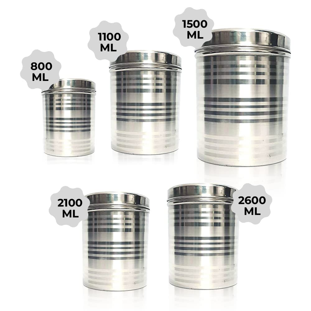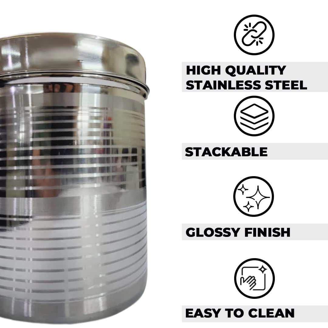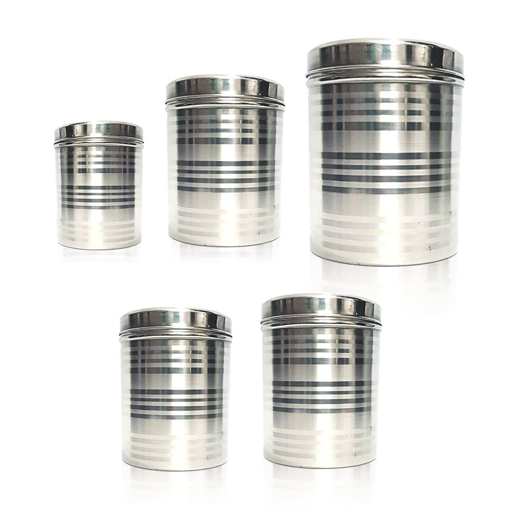 These storage containers for kitchen are shatter proof and are suitable for storing various items such as food, stationary, toys and other household supplies. Their blunt edge design and shiny finish gives an elegant touch to your stainless steel kitchen cookware. Available in a pack of 5, these steel containers are easy to clean and stackable.Detailed Specifications: